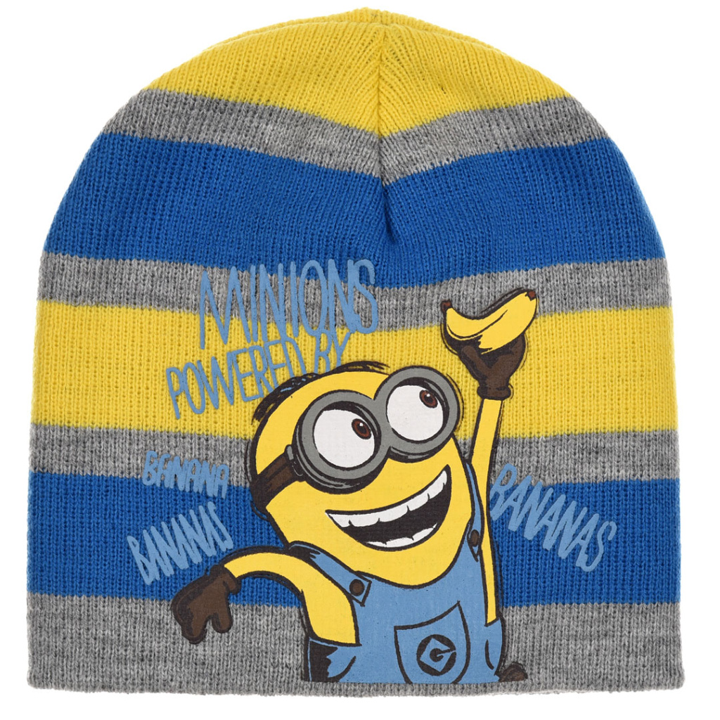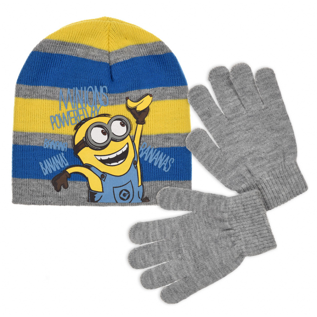 Chlapecká pletaná čepice s potiskem Mimoňů. V setu s prstovými rukavicemi.