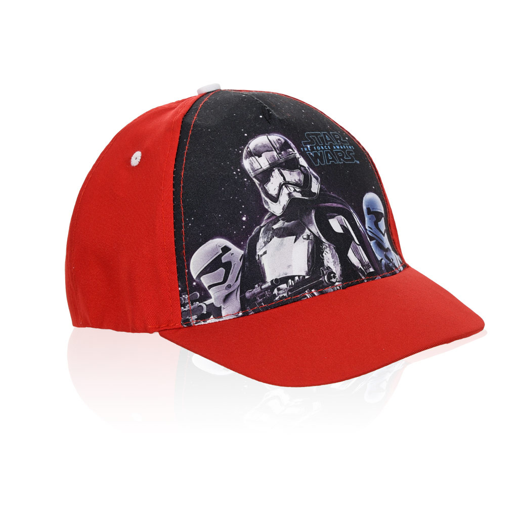 Čepice s kšiltem pro kluky. Motiv ze Star Wars. Vzadu zapínání na suchý zip. Velikost udává obvod hlavy v cm.