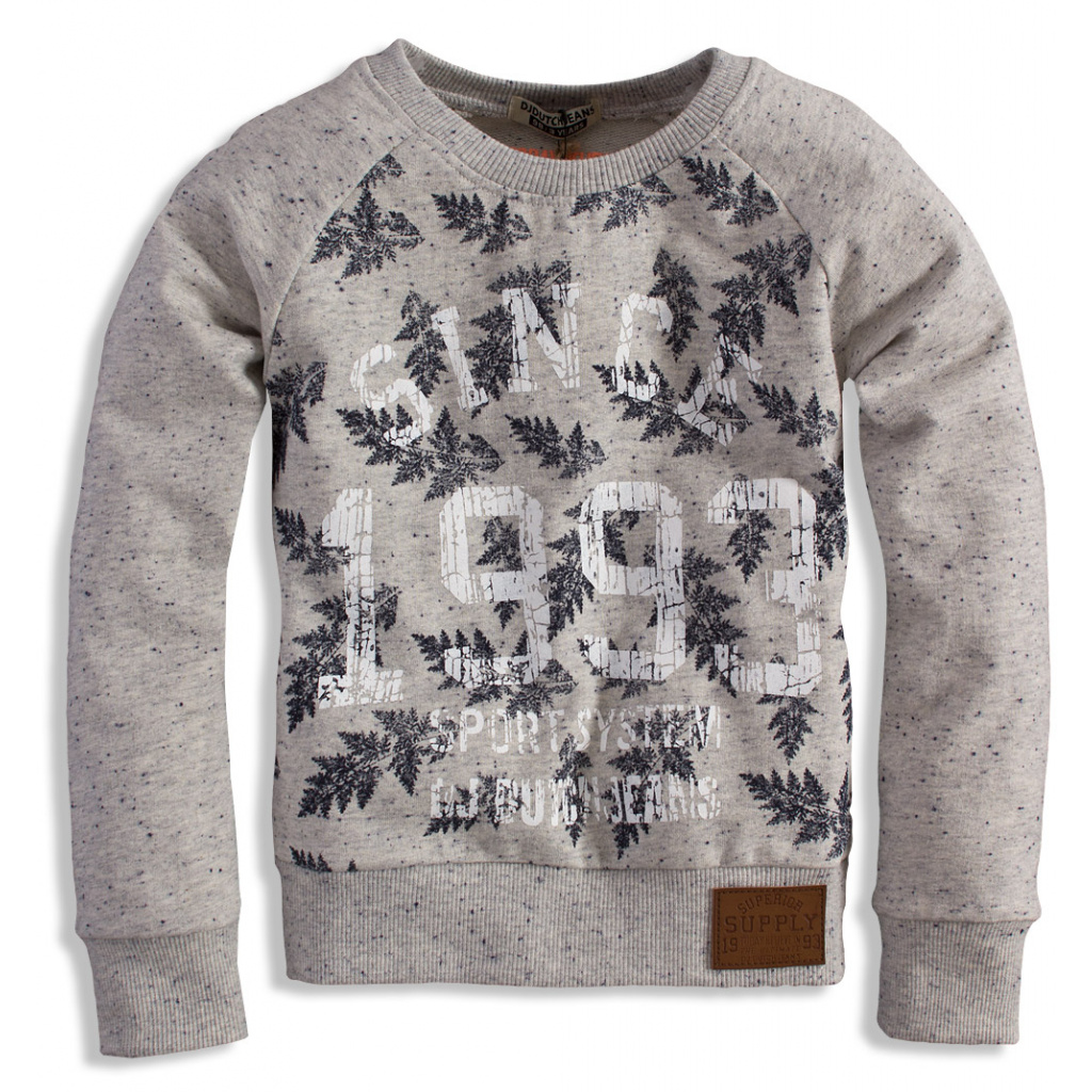 Dětská mikina bez kapuce. Vpředu potisk, dole nášivka. Úplet z rubu bez chloupku.Doplňkové parametry