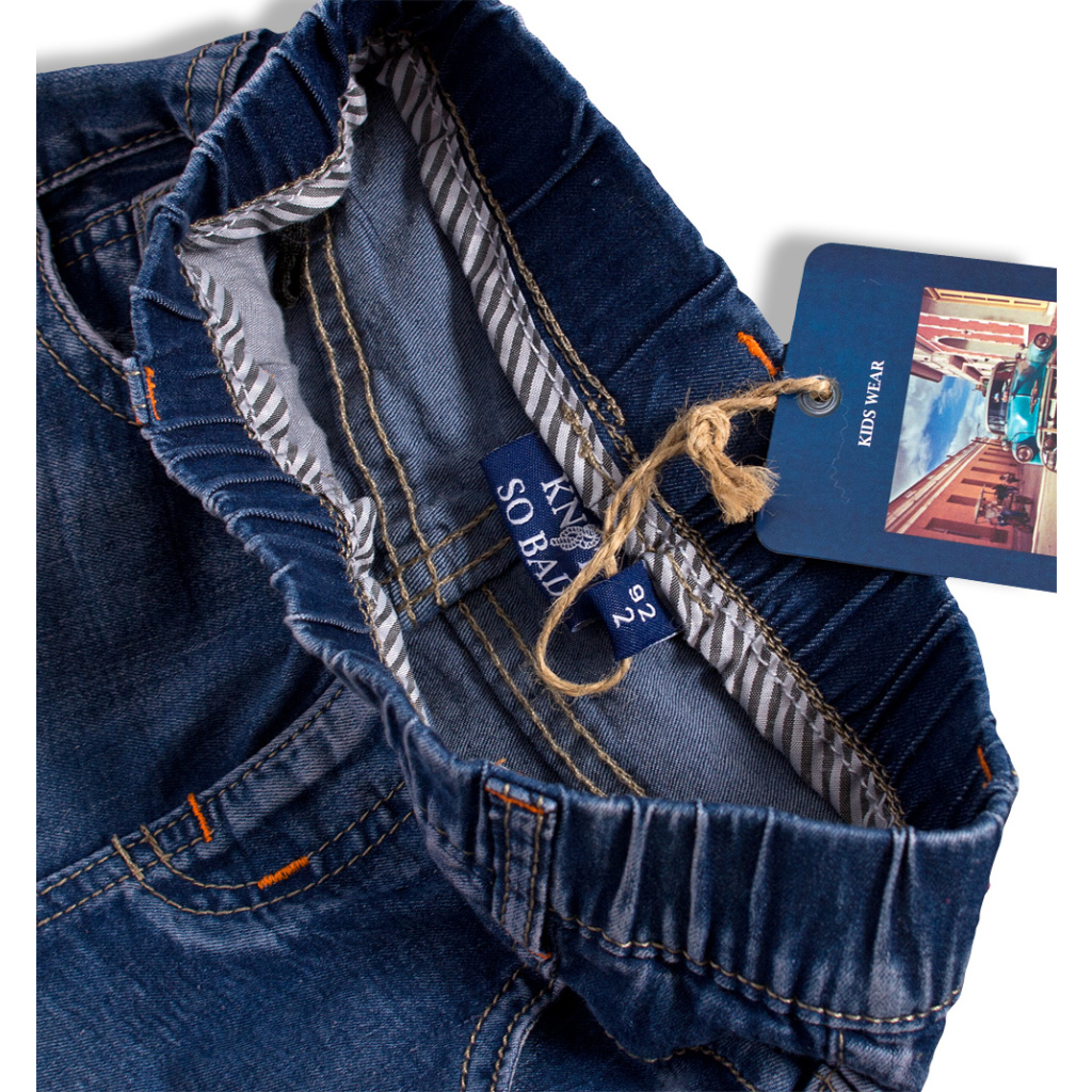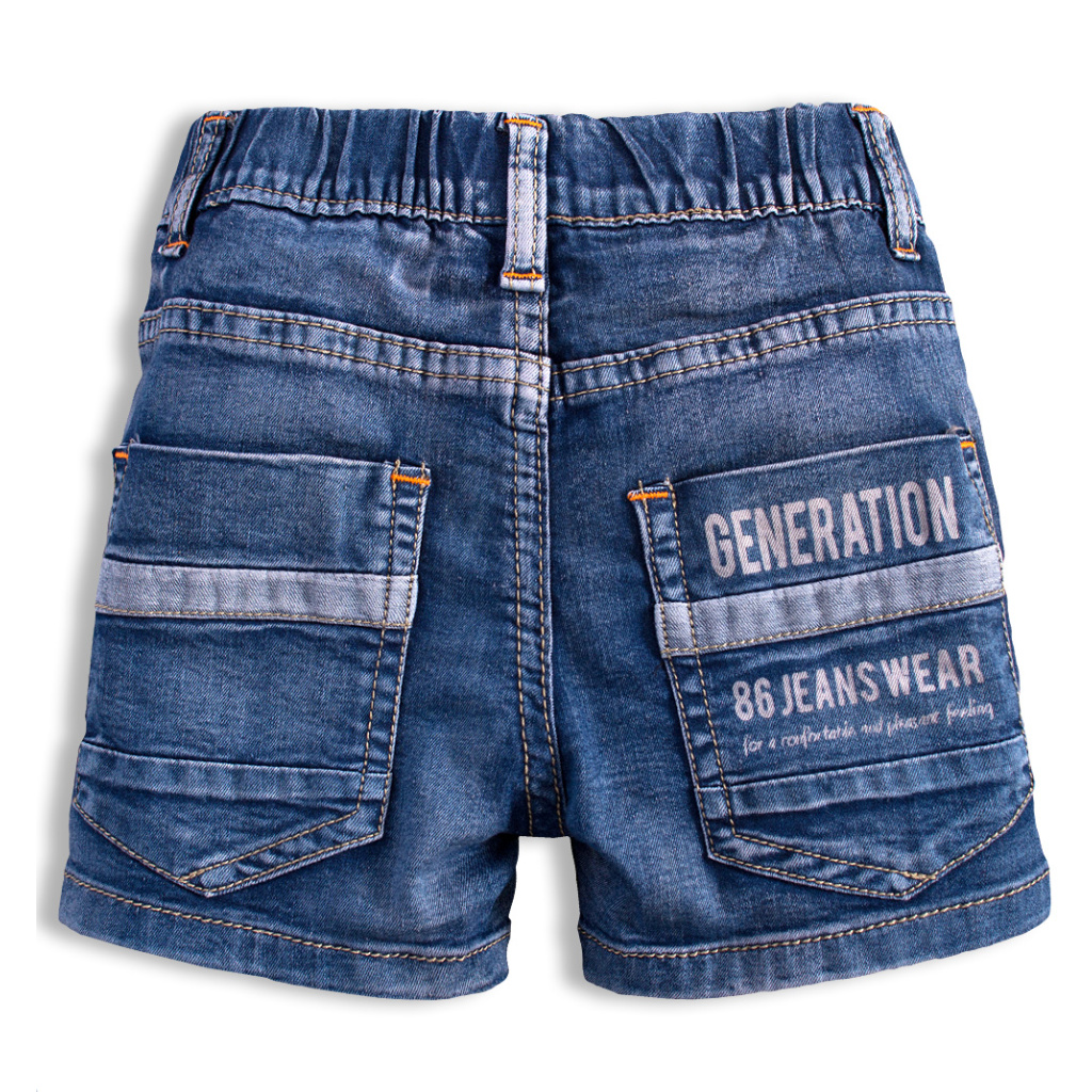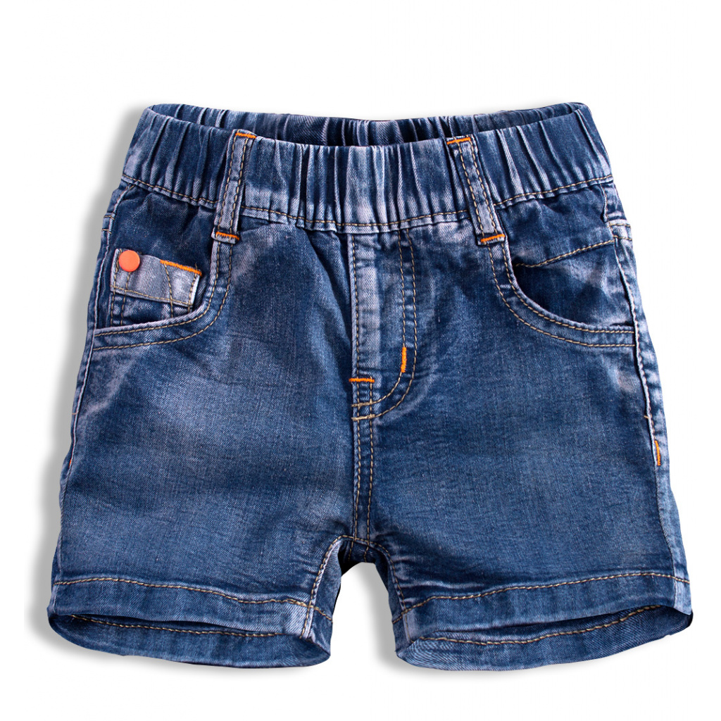 Chlapecké šortky z měkké, pružné džínoviny. V pase na gumu. Kapsy vpředu i vzadu. Barevné prošití a nýtek.Doplňkové parametry