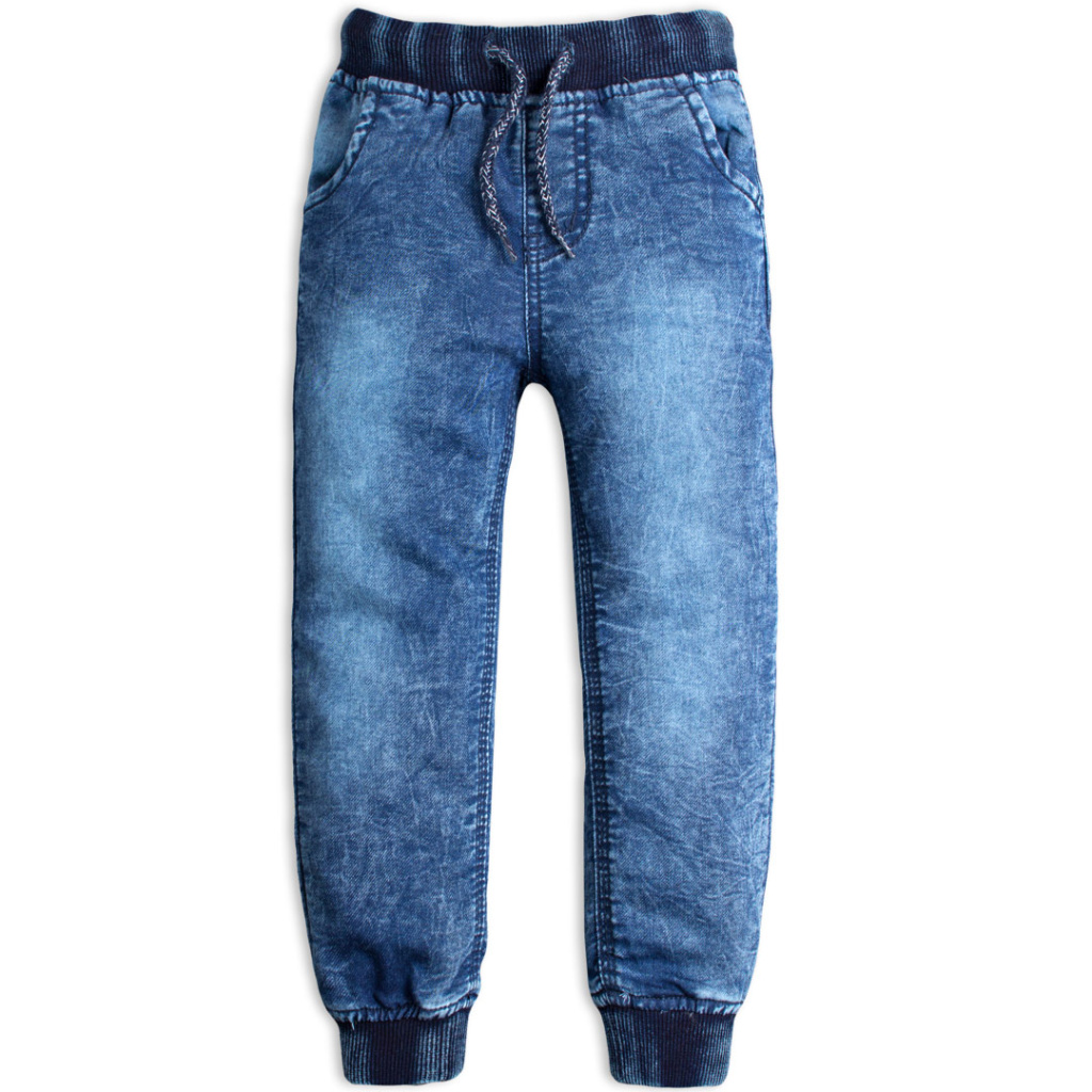 Chlapecké kalhoty z měkkého, pohodlného materiálu džínového vzhledu. V pase guma, tkanička na stažení. Funkční kapsy vpředu i vzadu.