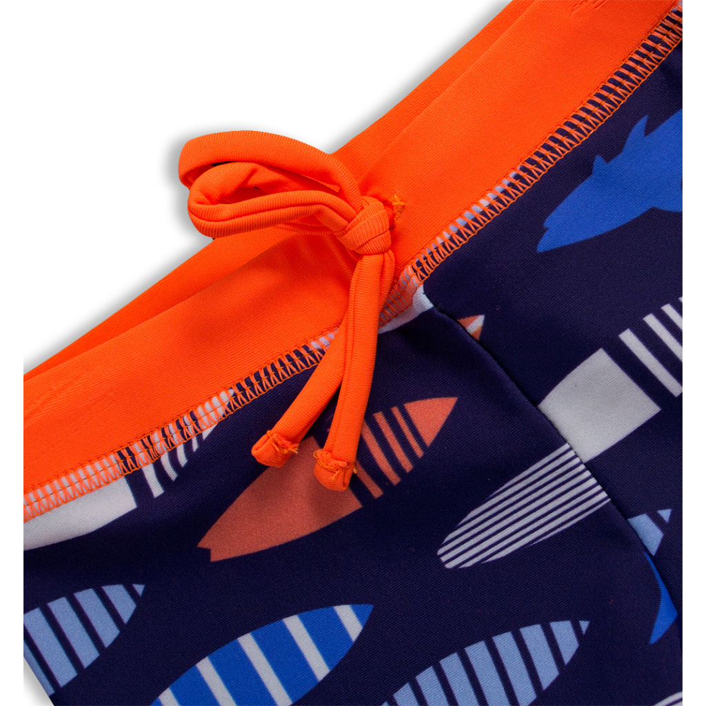 Chlapecké plavky - boxerky, s krátkou nohavičkou. V pase guma a tkanička na stažení. Barevný potisk.Doplňkové parametry