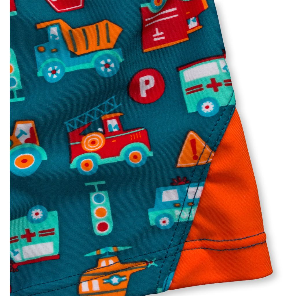 Chlapecké plavky - boxerky s krátkou nohavičkou. V pase guma. Barevný potisk aut.Doplňkové parametry