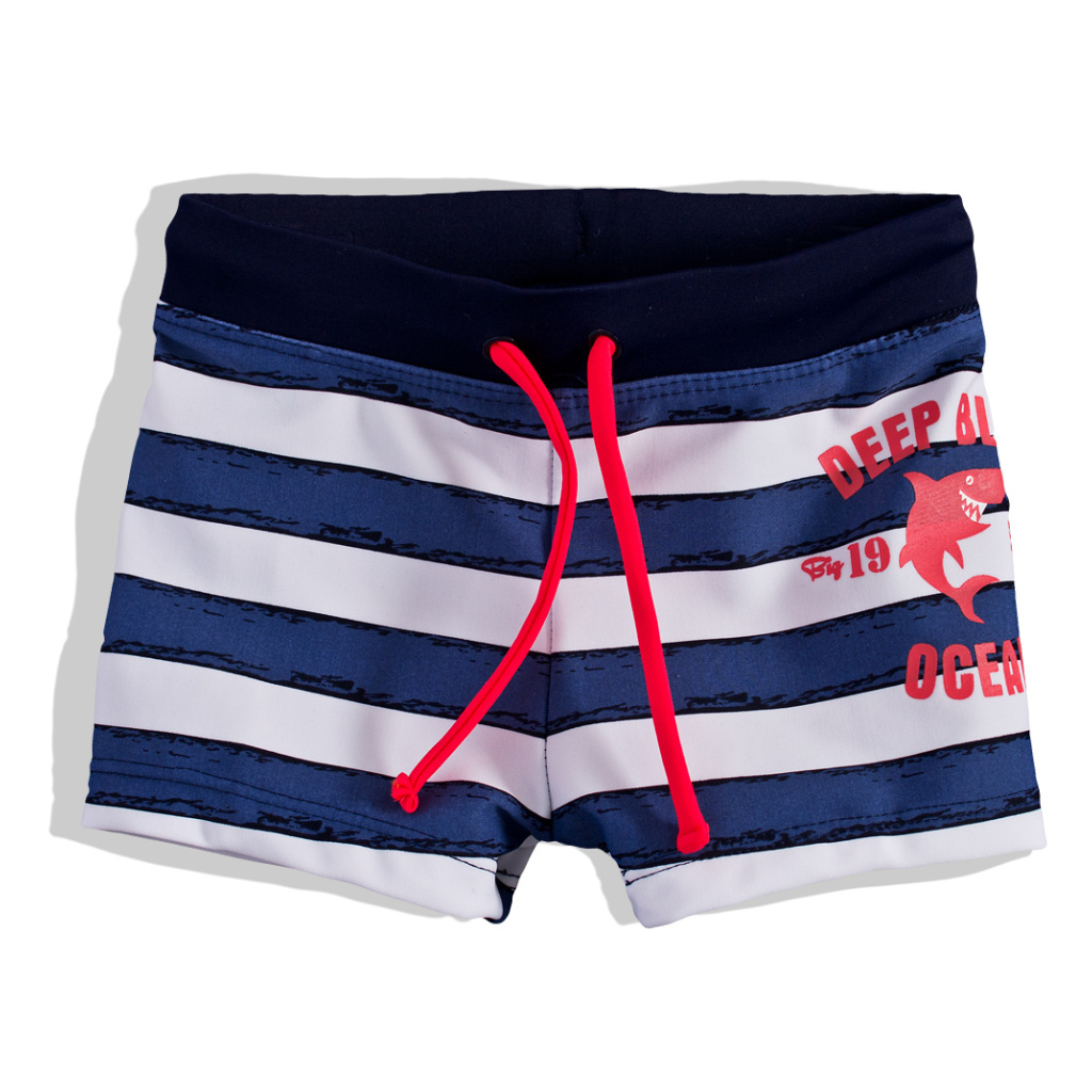 Chlapecké plavky. V pase guma, šňůrka na stažení. Potisk na nohavičce.