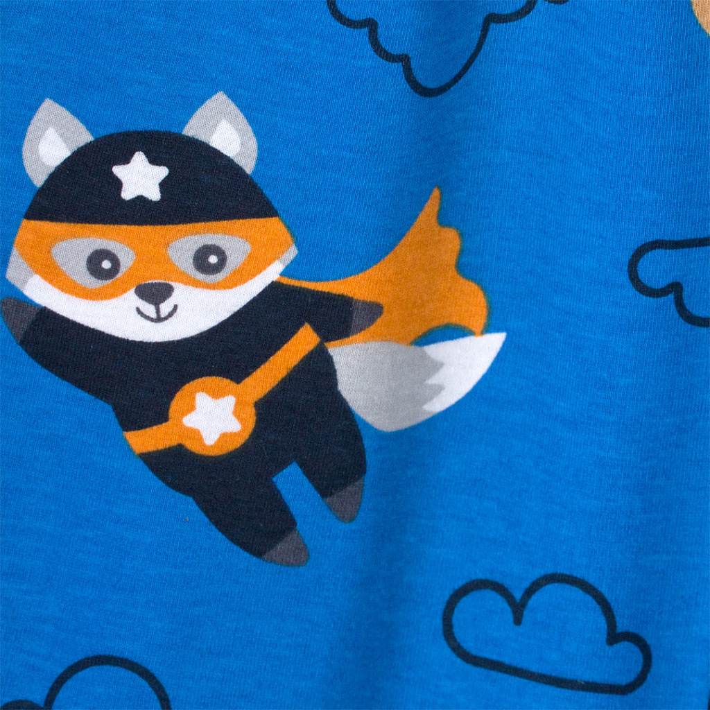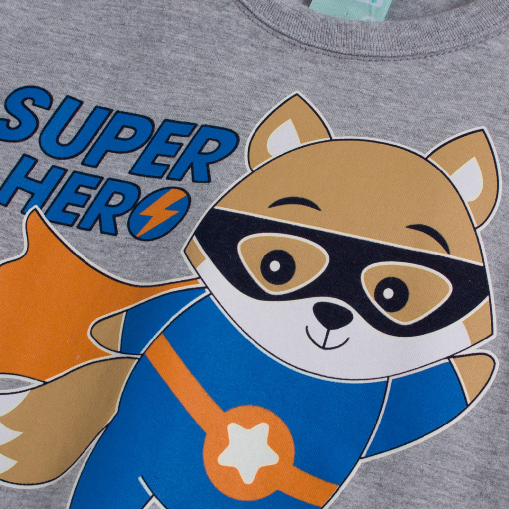 Chlapecké pyžamo s mývalem - superhrdinou. Dlouhé rukávy i nohavice. Obrysy obrázku na tričku ve tmě svítí. Vyrobeno v Brazílii.