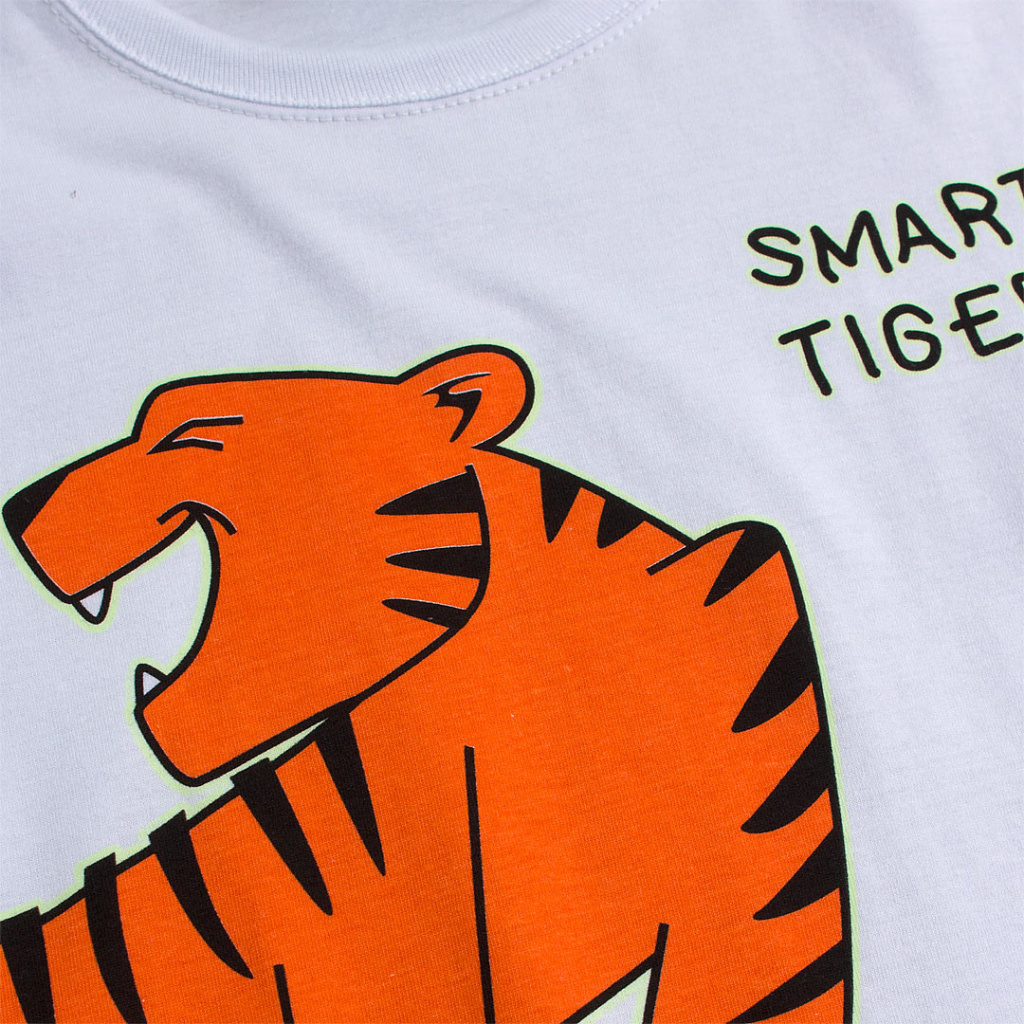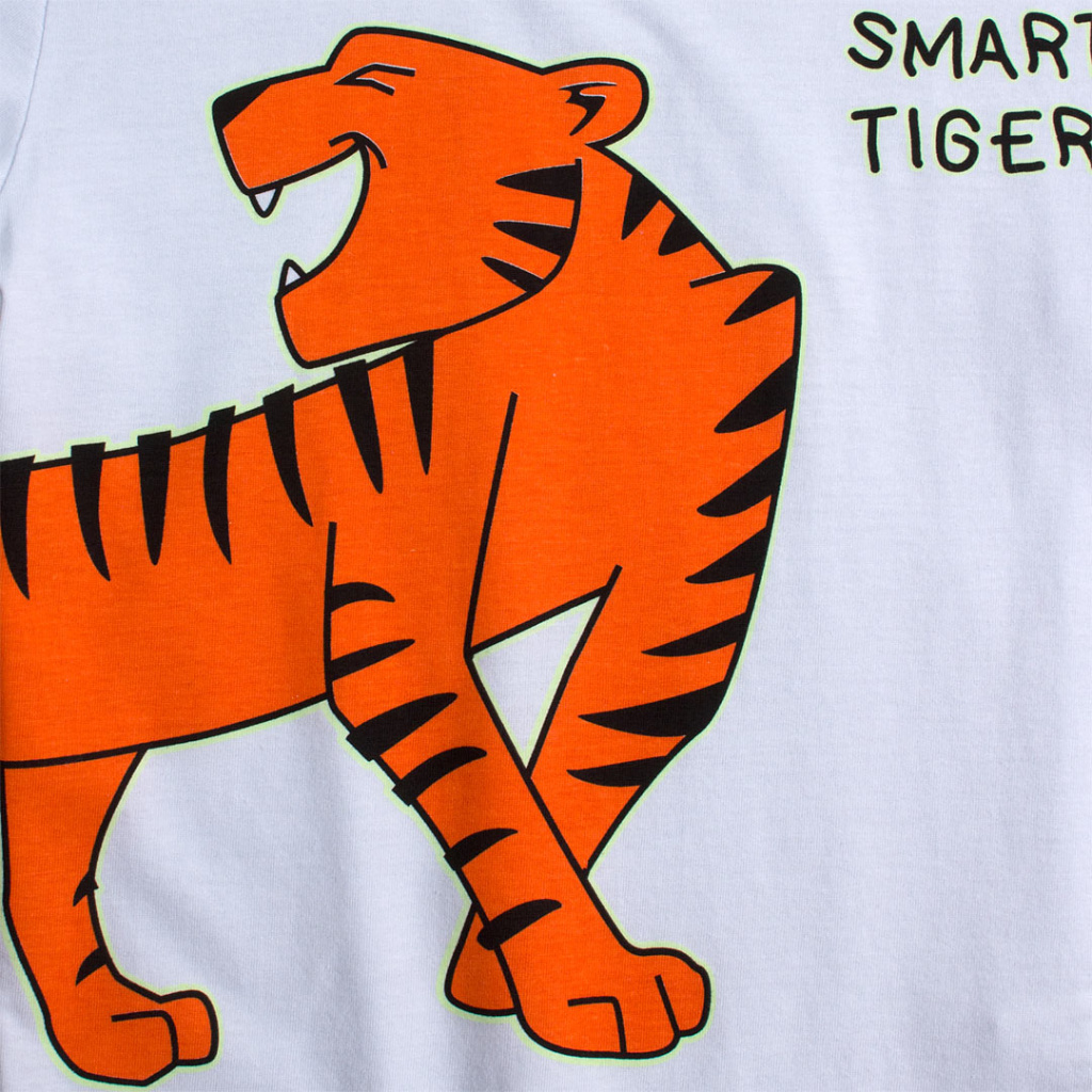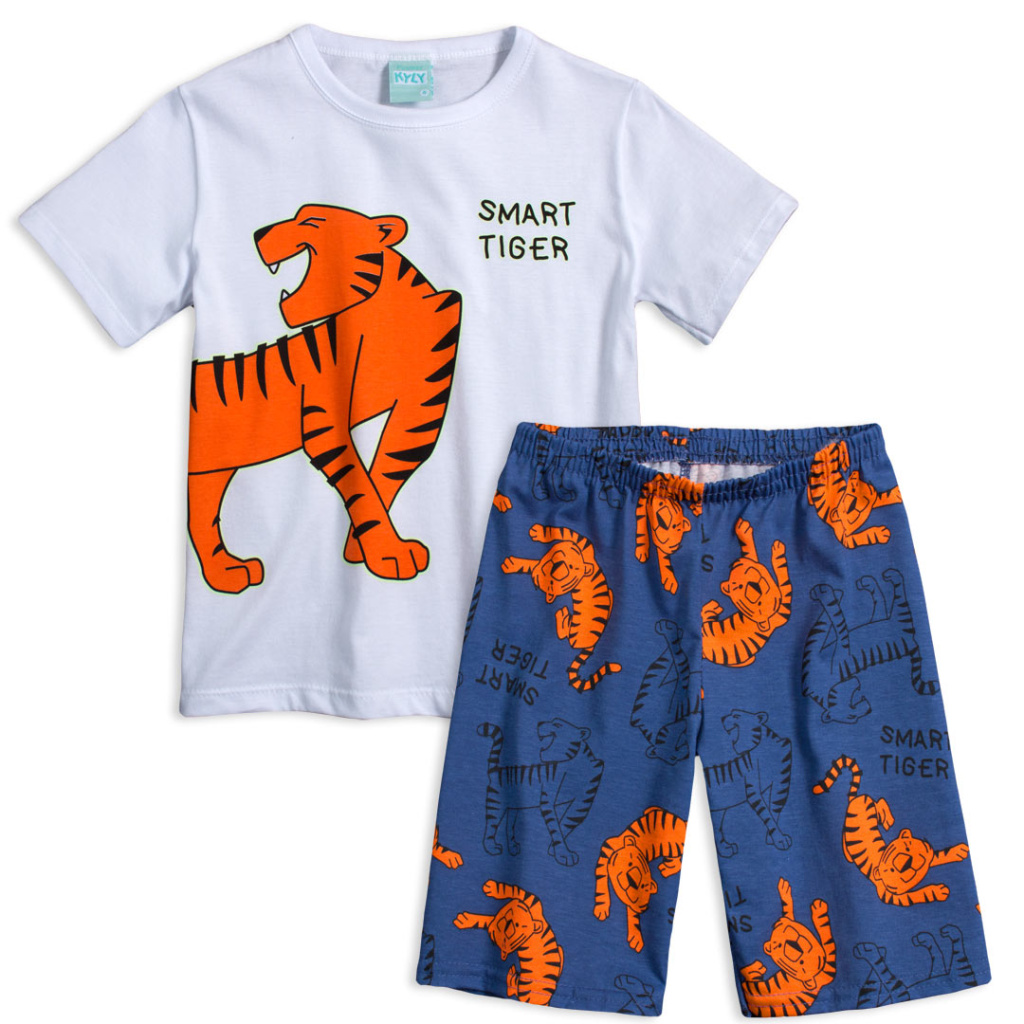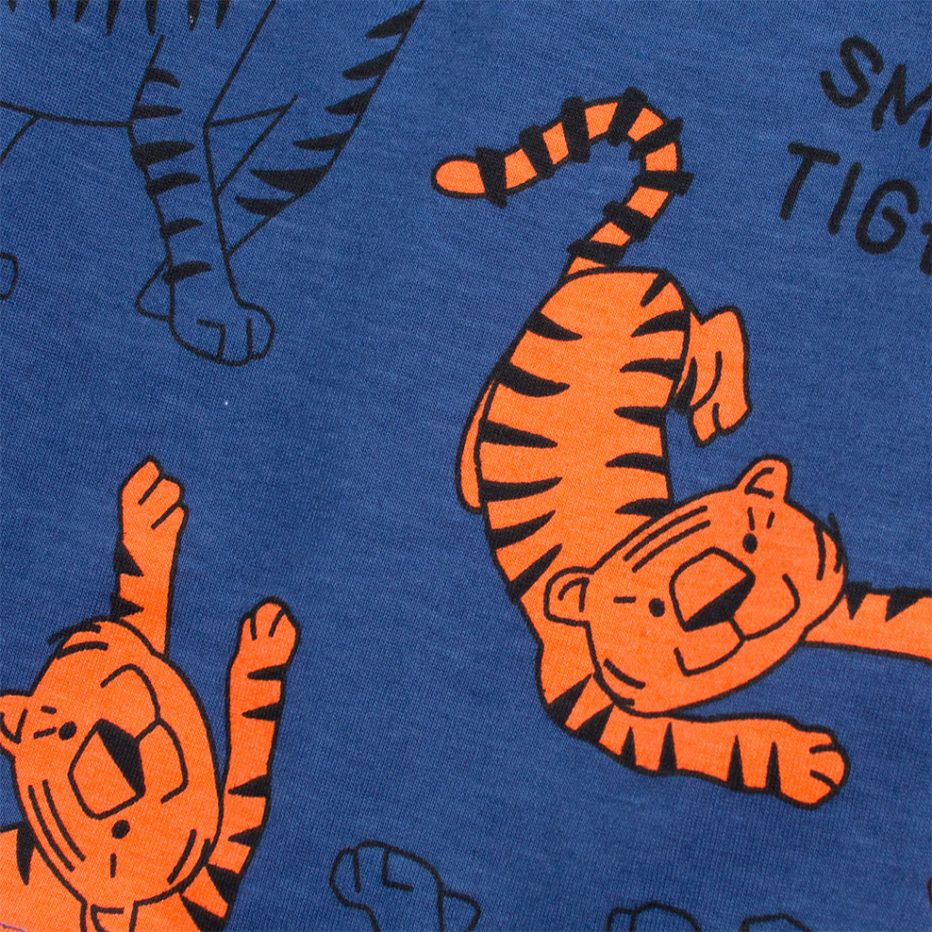 Chlapecké pyžamo s potiskem tygra. Obrysy obrázku na tričku ve tmě svítí. Příjemný bavlněný úplet. Vyrobeno v Brazílii.