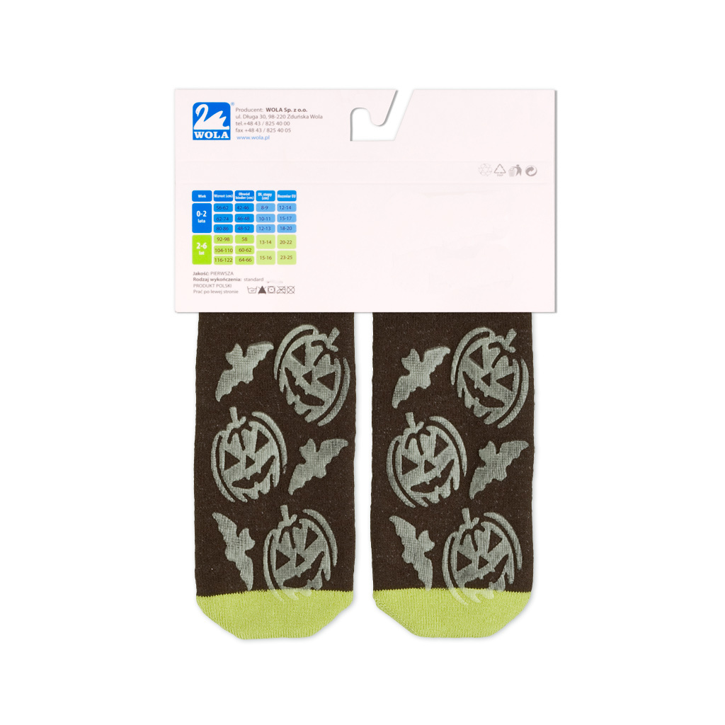 Ponožky s froté vrstvou uvnitř. Na chodidle je protiskluzový "ABS" potisk, na nártu obrázek, který ve tmě světélkuje. Ponožky mají atesty zdravotní nezávadnosti.Doplňkové parametry