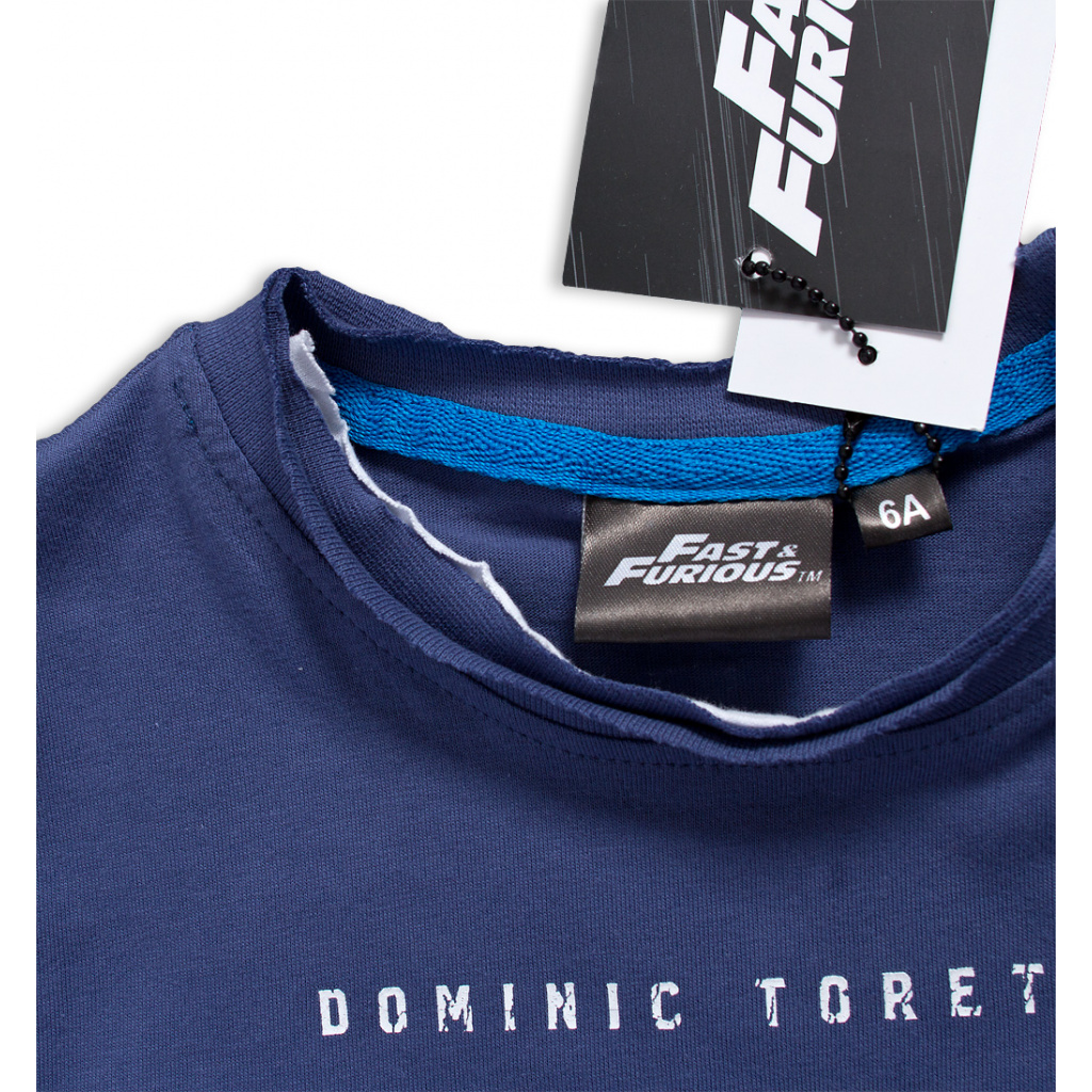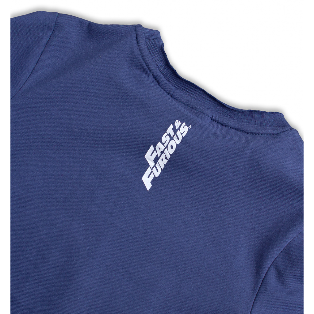 Dětské tričko s krátkým rukávem, s motivem závodního auta Fast and Furious. Dvojitý lem u krku. Malá značka Fast and Furious i na zádech. Měkký a pružný bavlněný úplet.