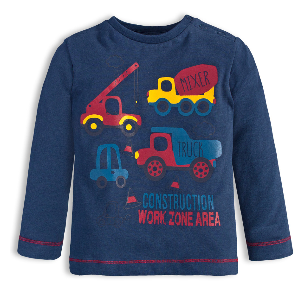 Chlapecké tričko s dlouhým rukávem. Vpředu potisk autíček. Zapínání na rameni usnadňuje oblékání. Příjemný bavlněný úplet.Doplňkové parametry