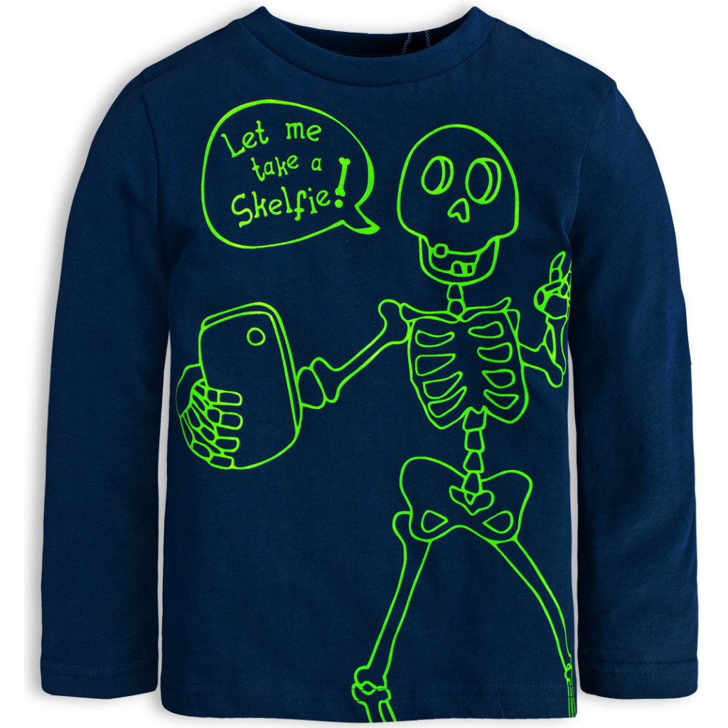 Chlapecké tričko Knot so Bad, dlouhý rukáv. Vtipný nápis SkELFIE potisk, který ve tmě svítí. Bavlněný úplet.