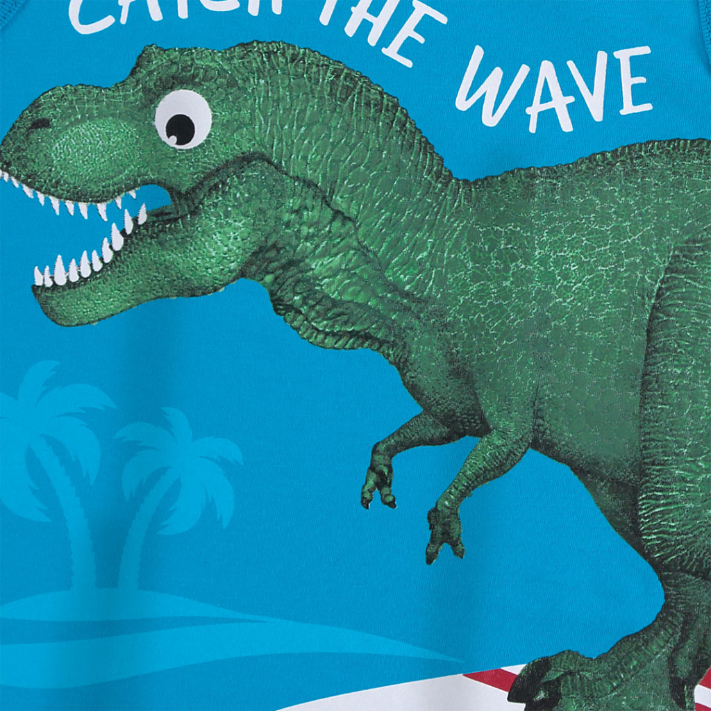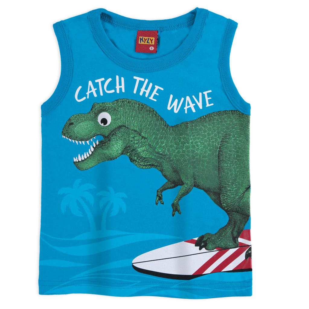 Chlapecké tričko bez rukávů. Potisk s dinosauřím motivem vpředu i vzadu. Příjemný bavlněný úplet. Vyrobeno v Brazílii.