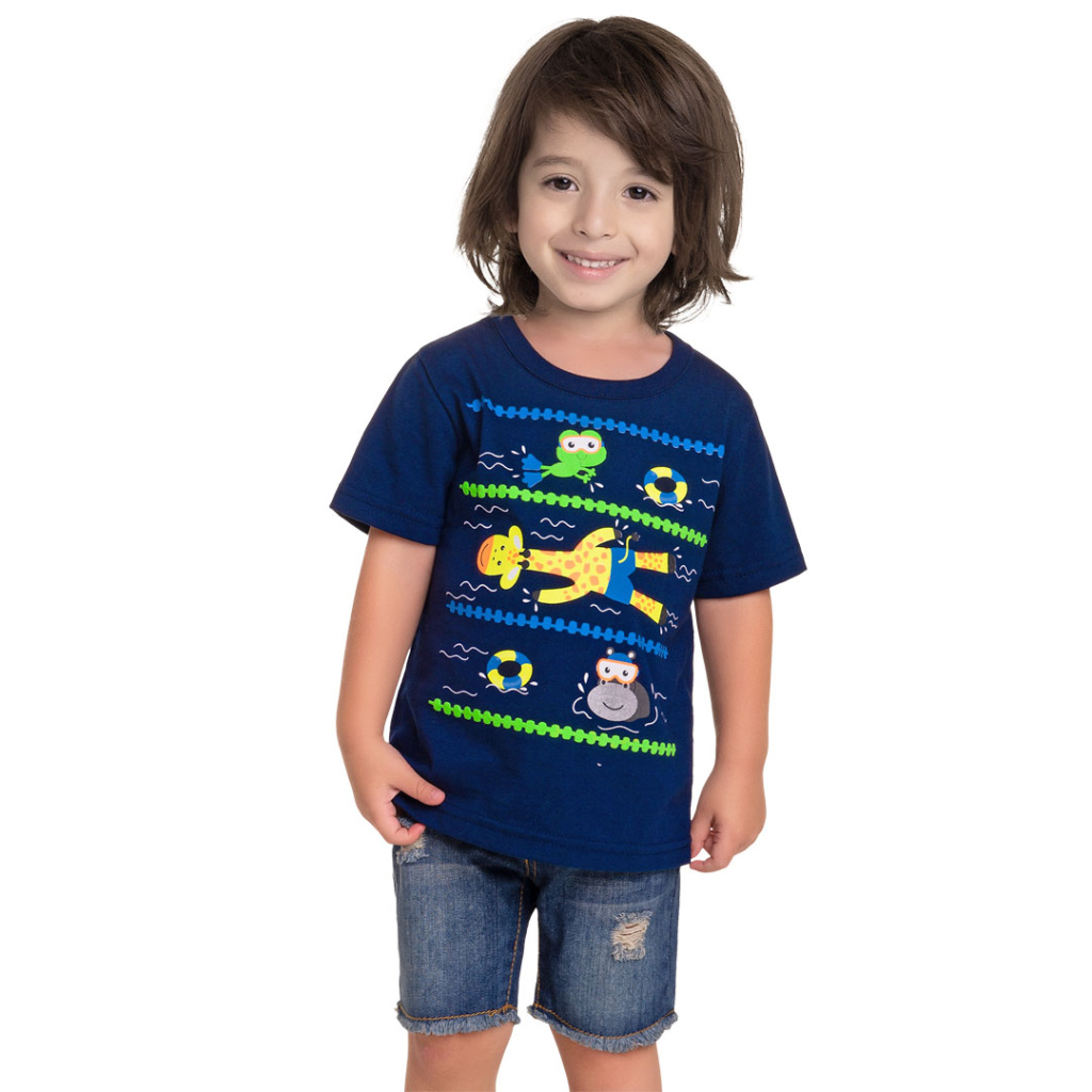 Chlapecké tričko s krátkým rukávem. Vpředu barevný, veselý potisk, zadní strana jednobarevná. Měkký bavlněný úplet. Vyrobeno v Brazílii.