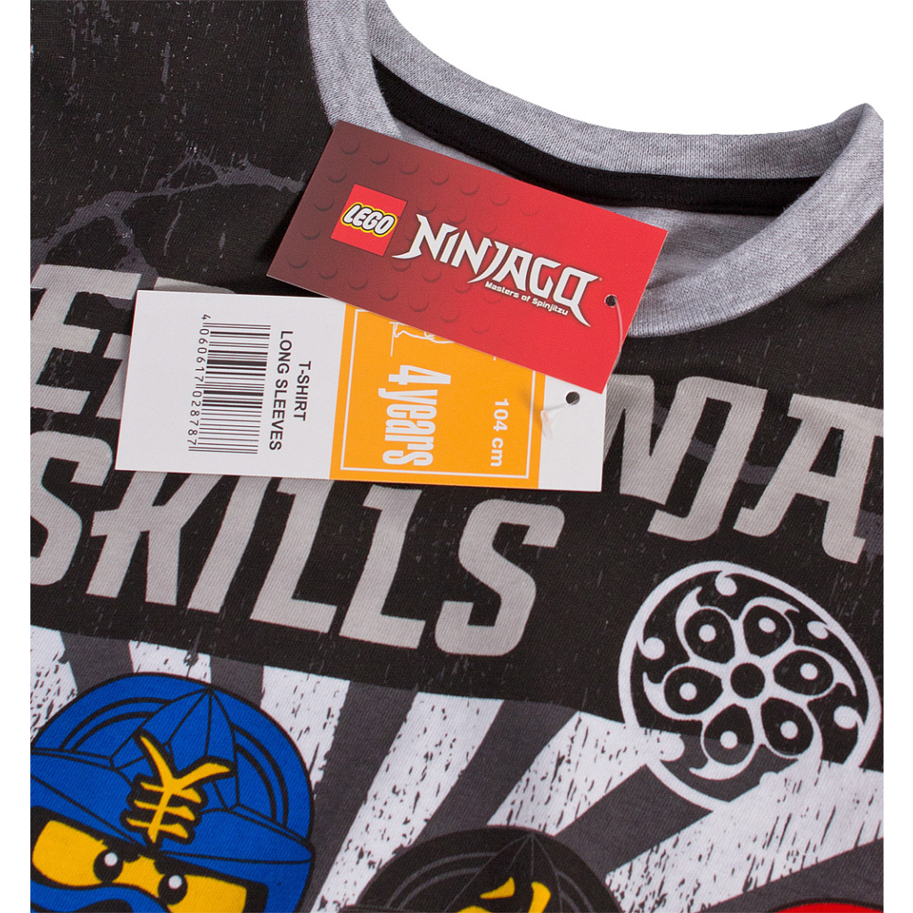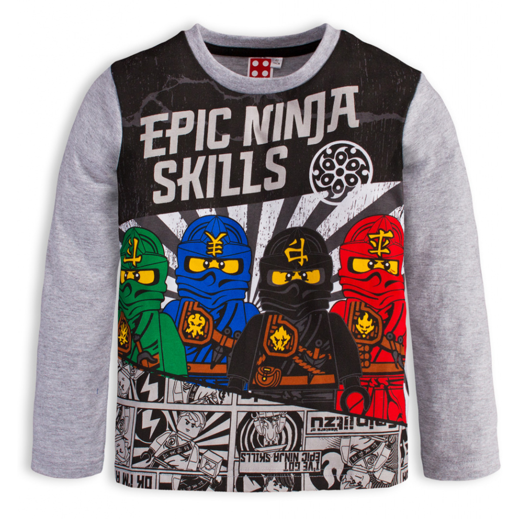 Chlapecké tričko s dlouhým rukávem. Vpředu potisk - licenční obrázek LEGO NINJAGO. Dole malá nášivka. Velmi příjemný, měkký a pružný bavlněný úplet.