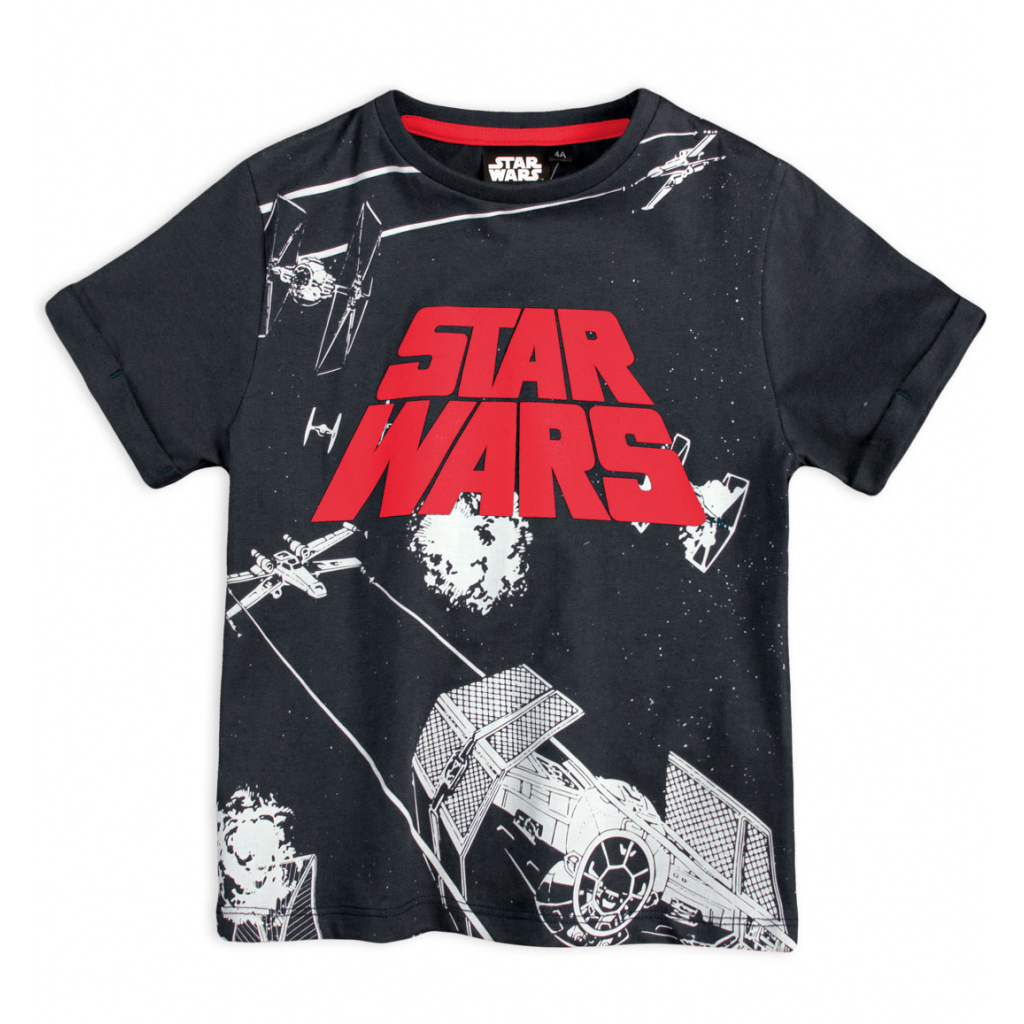 Chlapecké tričko s krátkými rukávy a oboustranným potiskem Star Wars. Bavlněný úplet.