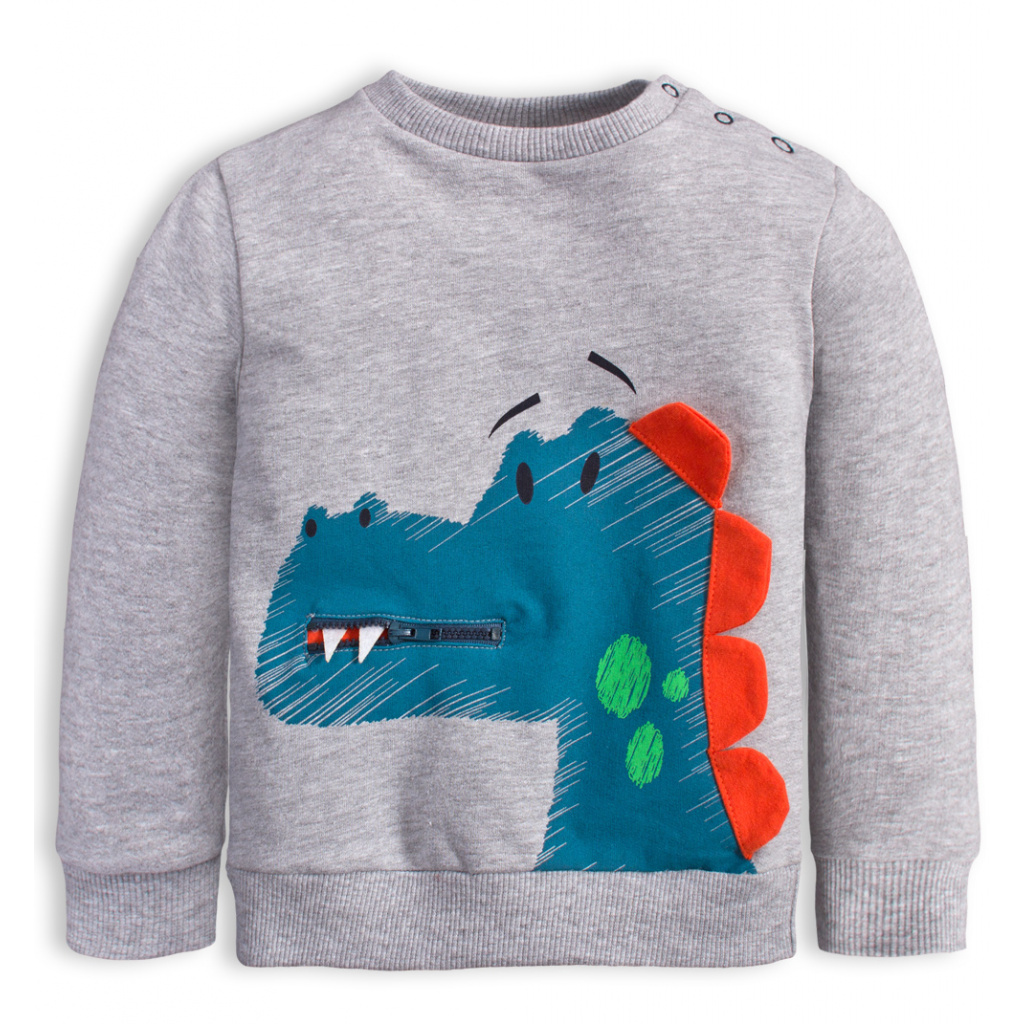 Dětská mikina s potiskem a našitou aplikací. Zapínání na rameni usnadňuje oblékání. Pružné lemy. Z rubu jemný chloupek.Doplňkové parametry