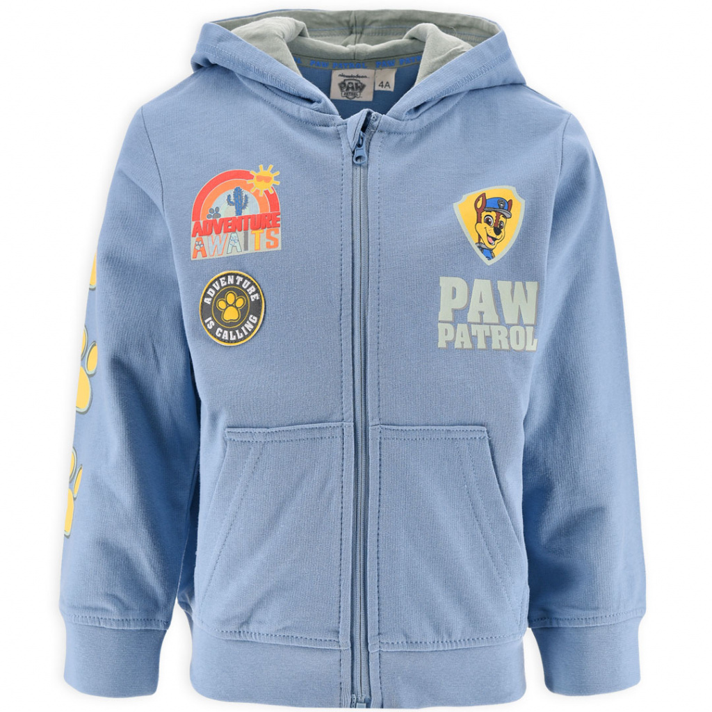 Chlapecká mikina na zip, s kapucí. S veselým, barevným potiskem Tlapkové patroly. Vpředu kapsy. Vyrobeno z příjemné, organické bavlny.