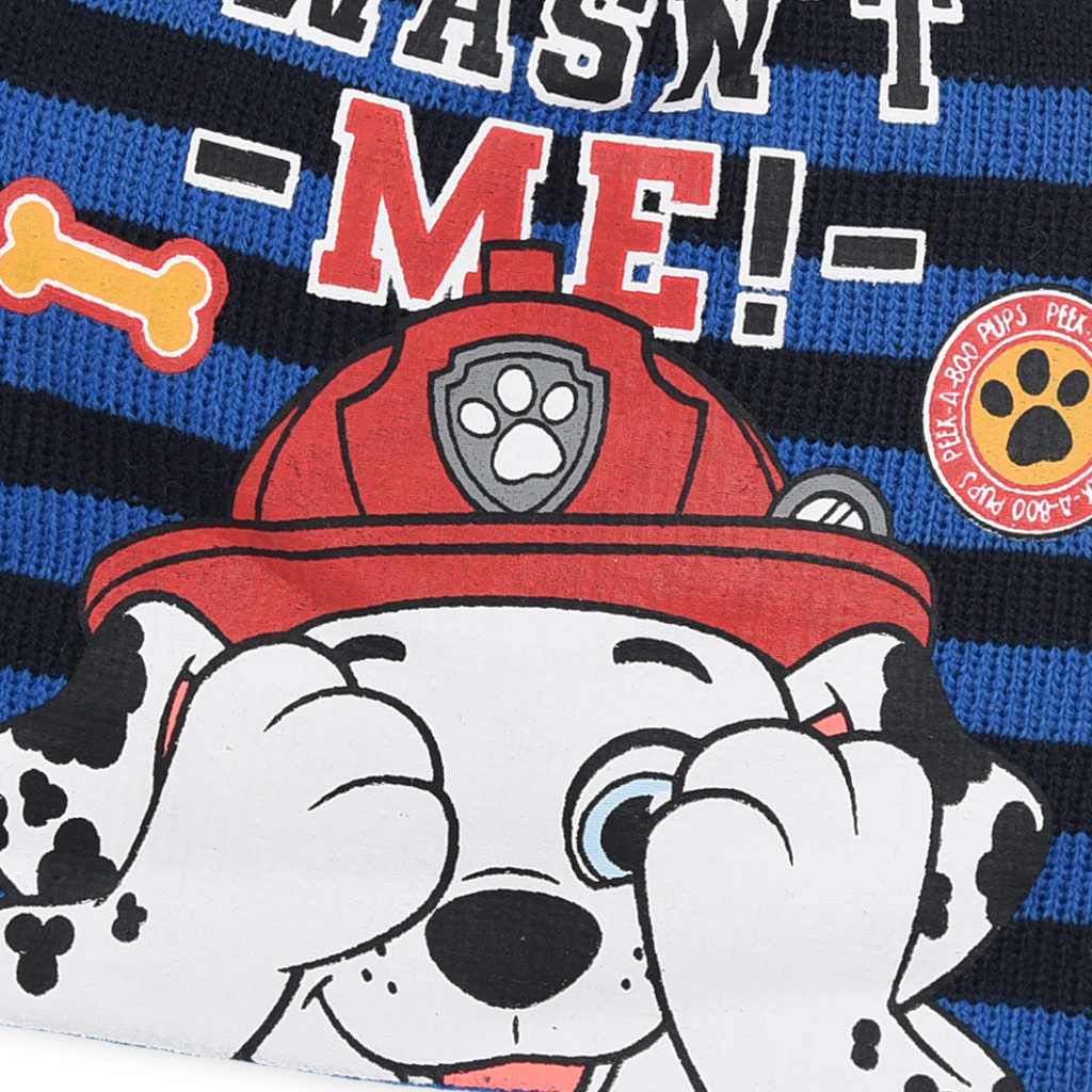 Pruhovaná čepice s krásným motivem Tlapkové patroly a jednobarevné rukavice.