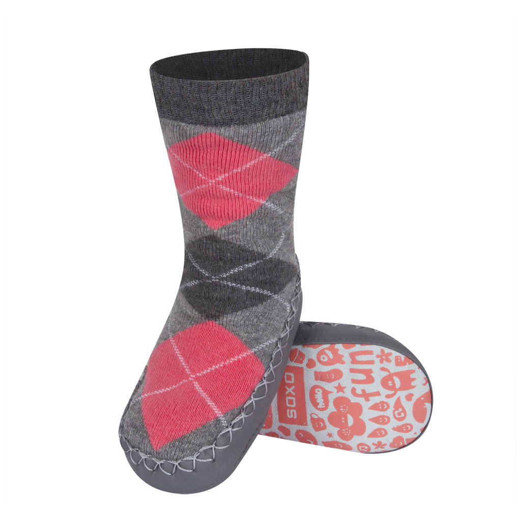 Dětské bačkory s koženou podešví SOXO KOSTKY růžové