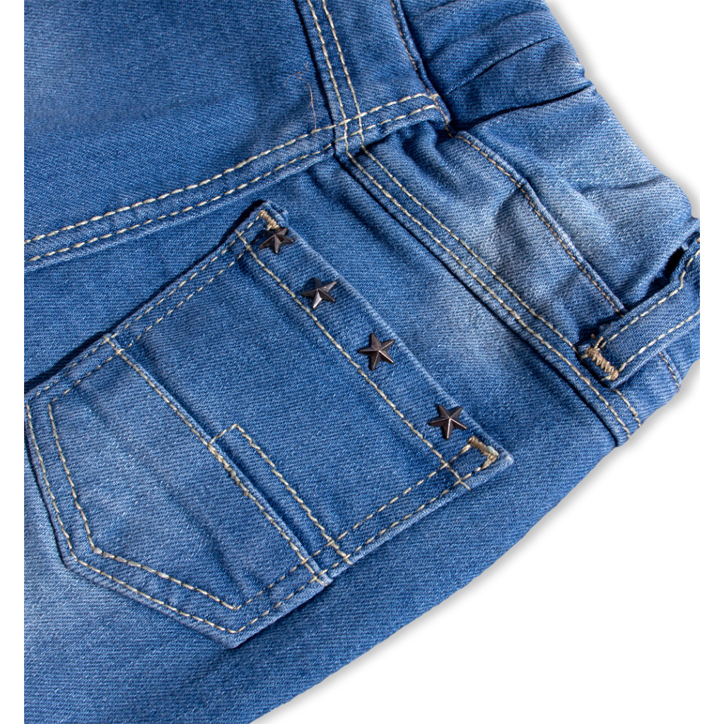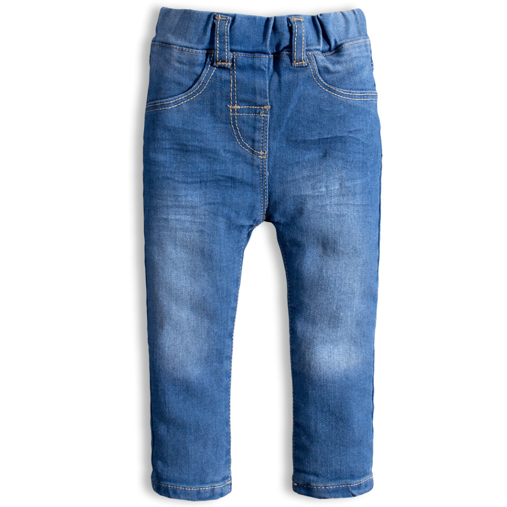 Dívčí kalhoty. V pase na gumu. Vpředu falešné kapsy, vzadu našitá kapsa funčkní. Džínovina s podílem elastanu.Doplňkové parametry