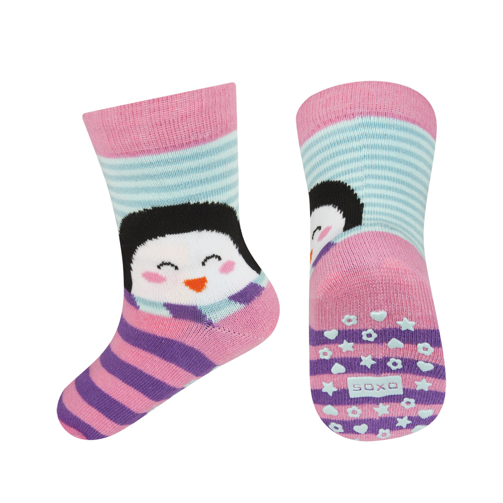 Dětské ponožky s protiskluzem SOXO TUČŇÁK růžové