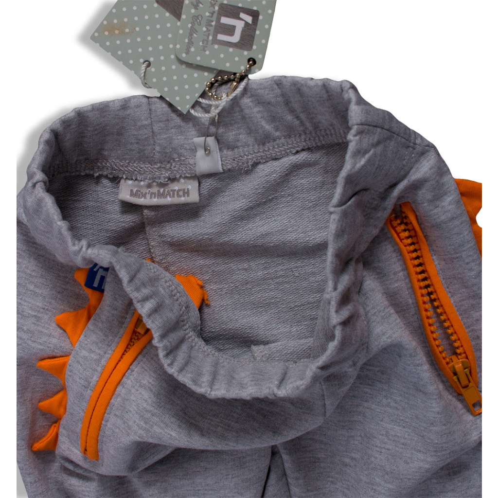 Dětské tepláky. V pase guma. Falešné kapsy na zip. Po stranách našitá aplikace. Pružné lemy na nohavicích. Příjemný úplet, z rubu bez chloupku.Doplňkové parametry