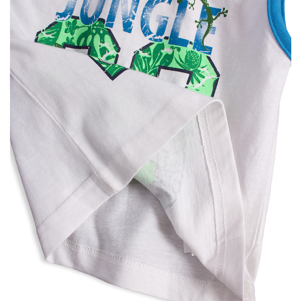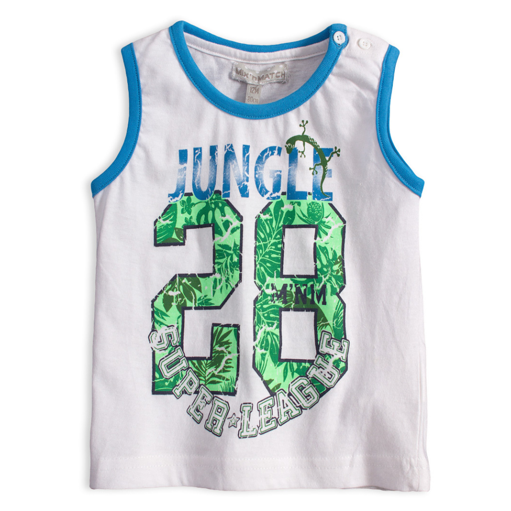 Dětské tričko bez rukávů. Vpředu potisk. Na rameni praktické zapínání na knoflíčky. Příjemný, měkký a pružný úplet.Doplňkové parametry