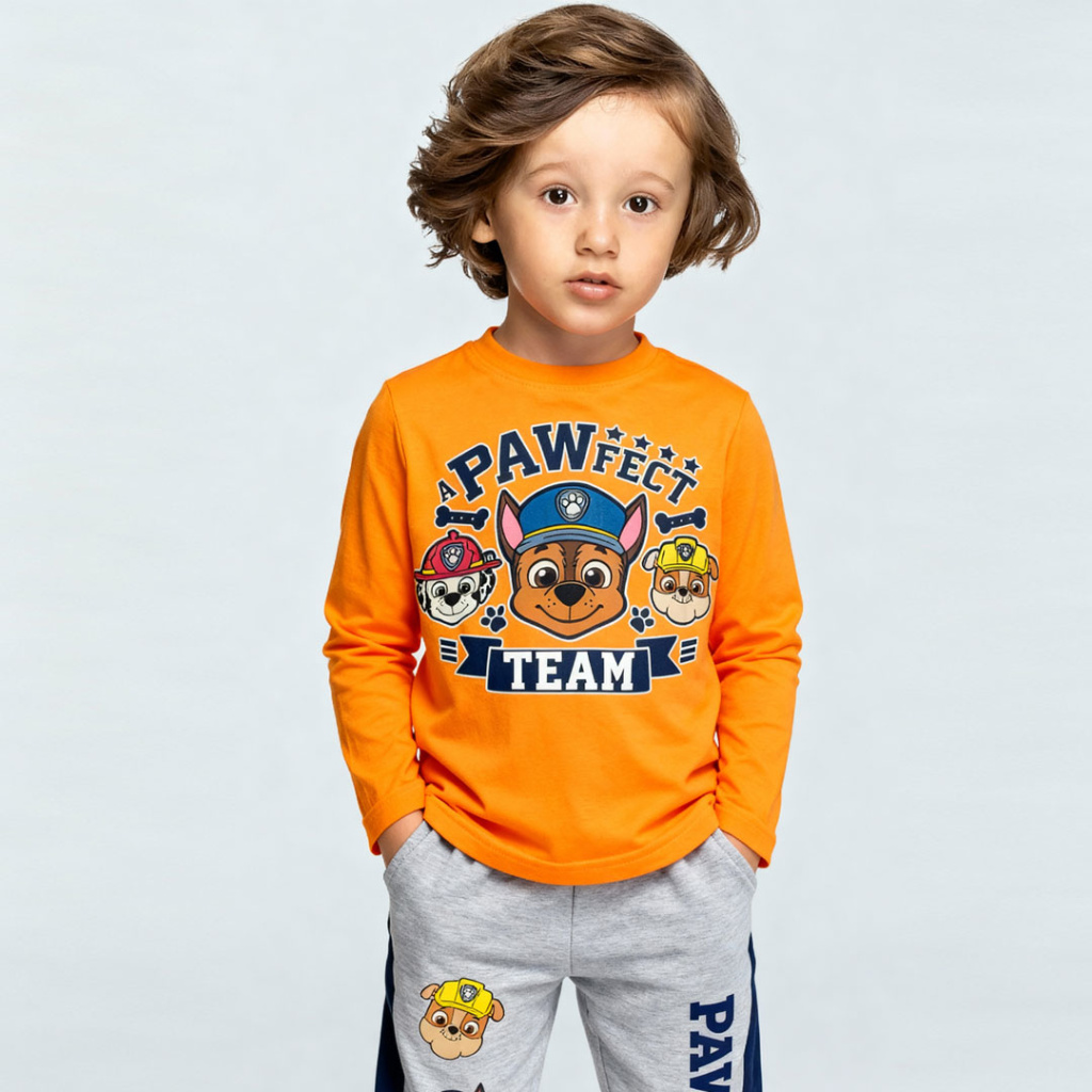 Krásné tričko s dlouhým rukávem, s potiskem Tlapkové patroly. Výrazná barva, bavlněný úplet.