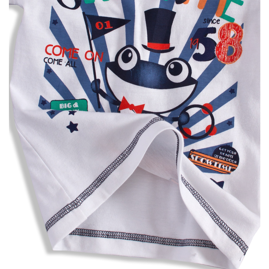 Dětské tričko s krátkým rukávem. Vpředu potisk. Kontrastní prošití. Na rameni zapínání na patentky. Měkký bavlněný úplet.Doplňkové parametry