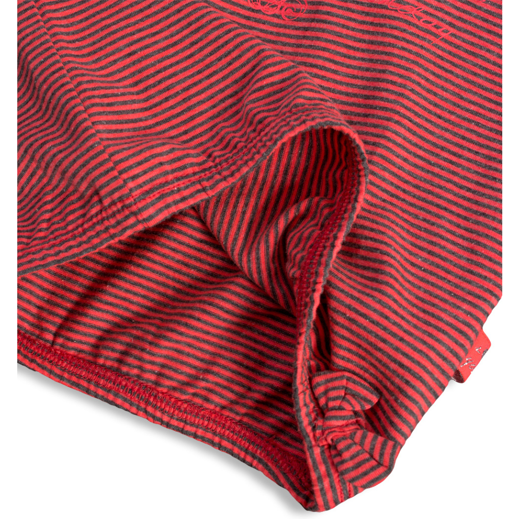 Dívčí tričko, dlouhý rukáv. Vpředu potisk a našitý nápis. Dole našitá mašlička. Rukávy i spodní okraj do tenké gumičky. Příjemný pružný úplet. Na rameni zapínání na knoflíčky.