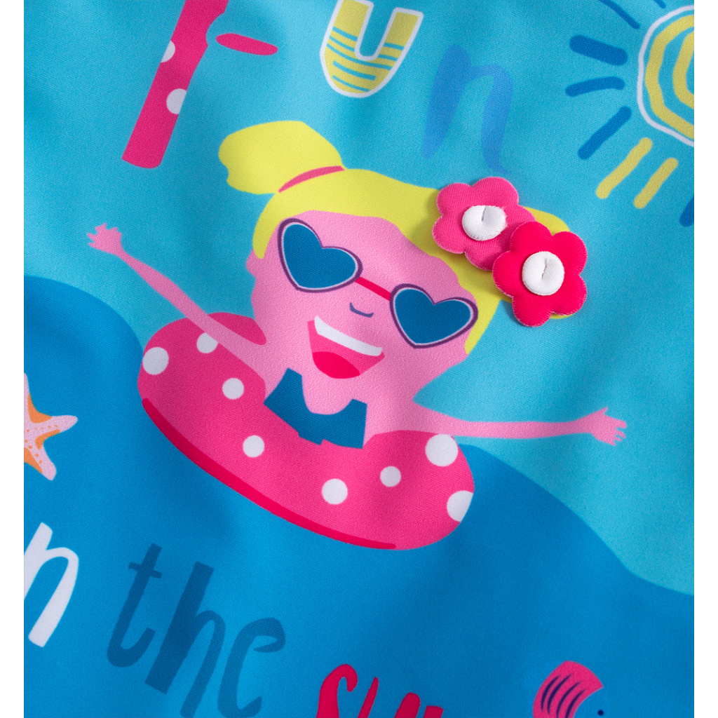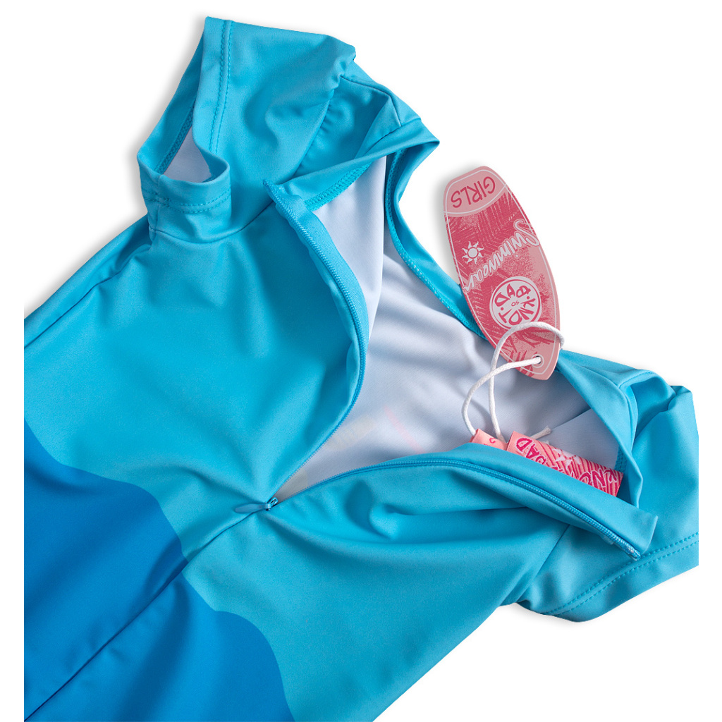 Dětský overal na koupání. Ideálně ochrání před ostrými slunečními paprsky. Pohodlné oblékání díky skrytému zipu na zádech.Doplňkové parametry