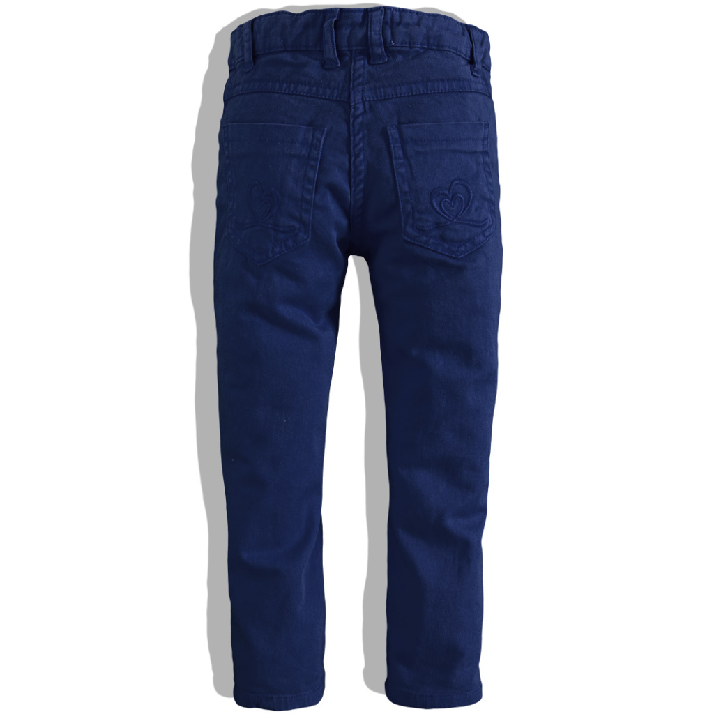 Dívčí barevné džíny. V pase nastavitelná guma, zapínání na zip a knoflík.Doplňkové parametry