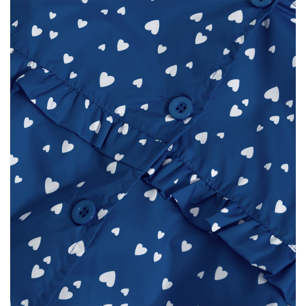 Šusťáková bunda pro holčičky. S kapucí, zapínání na knoflíky. Podšívka z bavlněného úpletu na těle a v kapuci, v rukávech polyesterová podšívka pro snadné oblékání. Potisk srdíček.