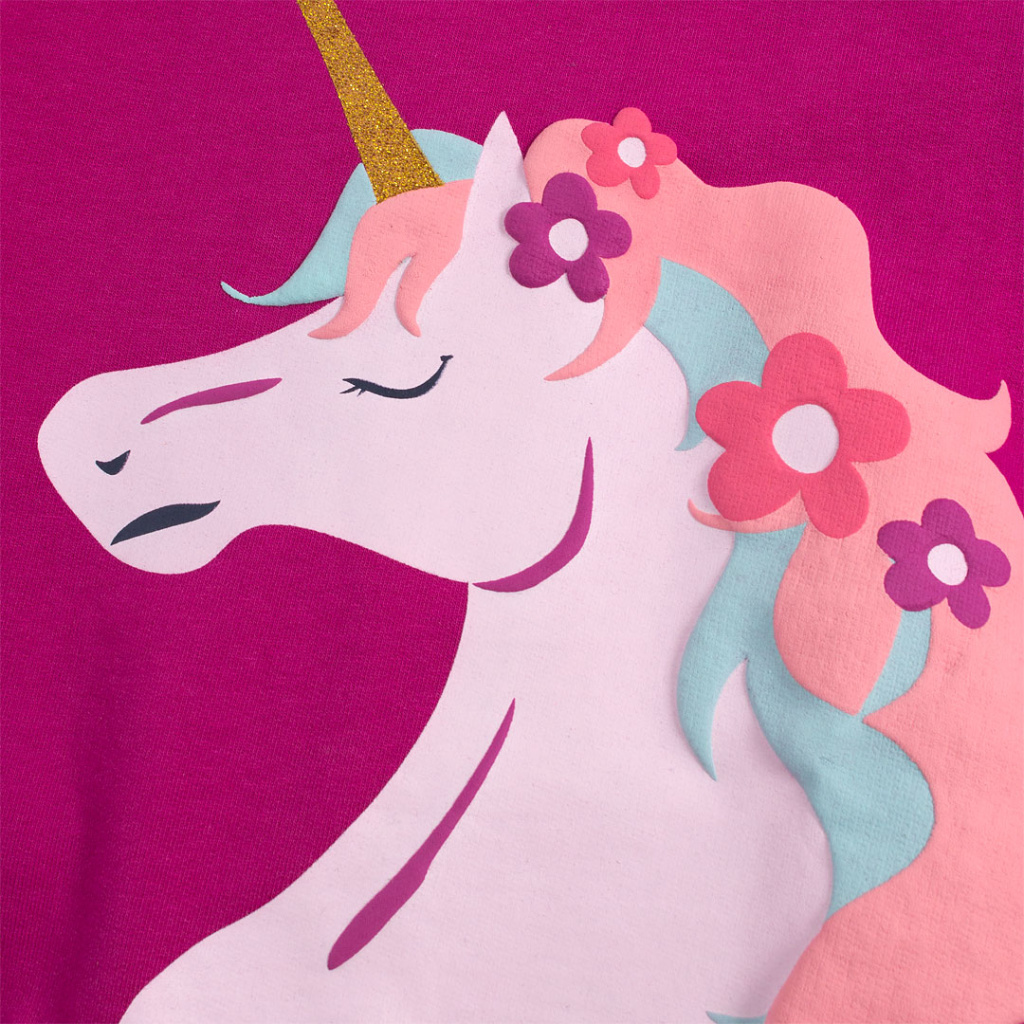 Dívčí mikina s barevným potiskem kouzelného jednorožce. Příjemný materiál, z rubu jemný chloupek.