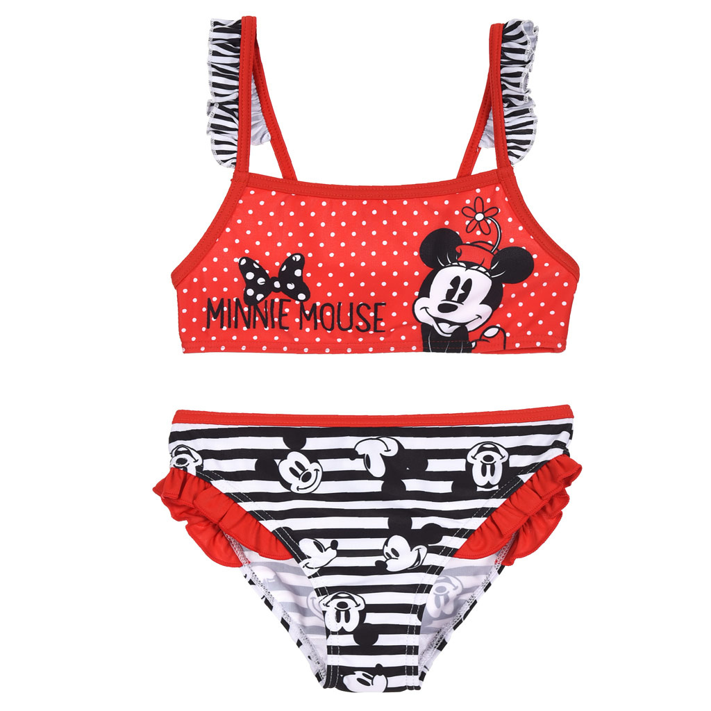 Dvoudílné dívčí plavky z Disney kolekce Minnie Mouse. Vrchní díl bez zapínání. Super kombinace proužků a drobných puntíčků.