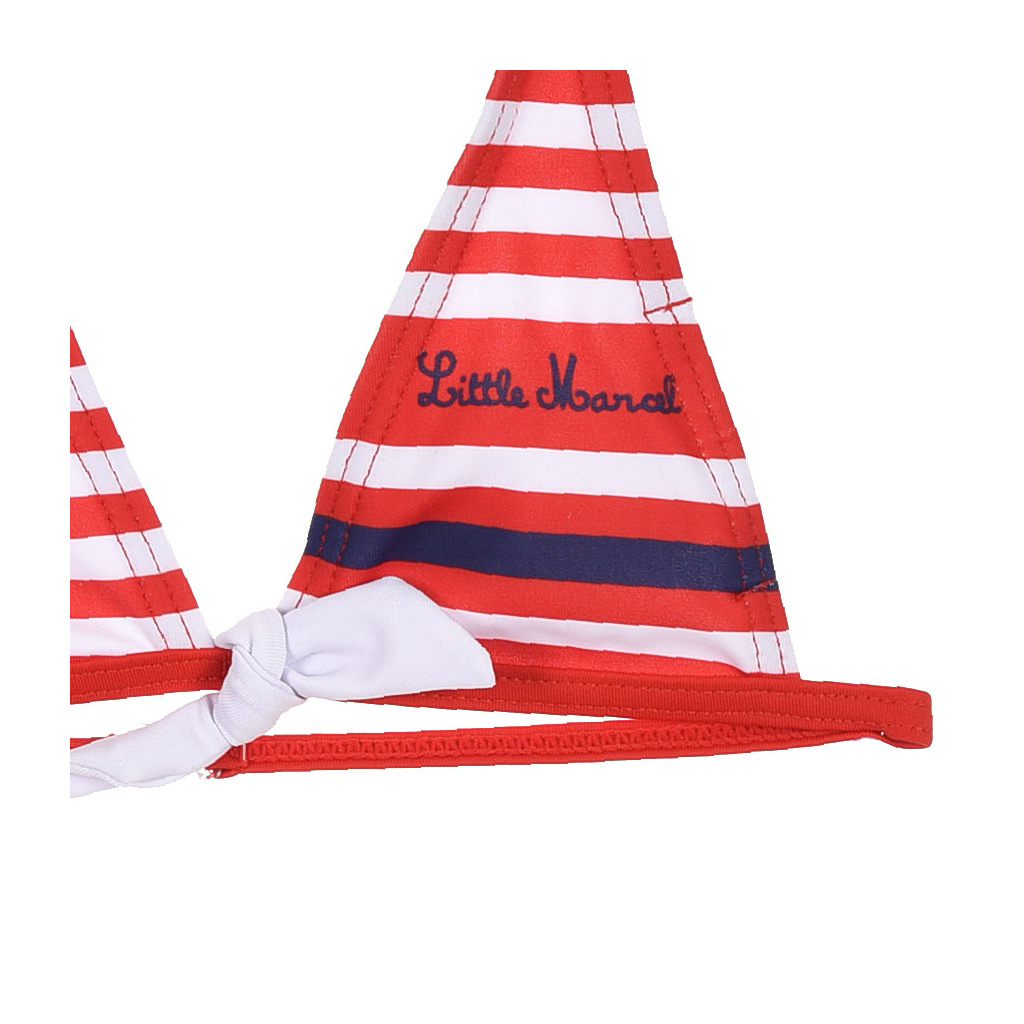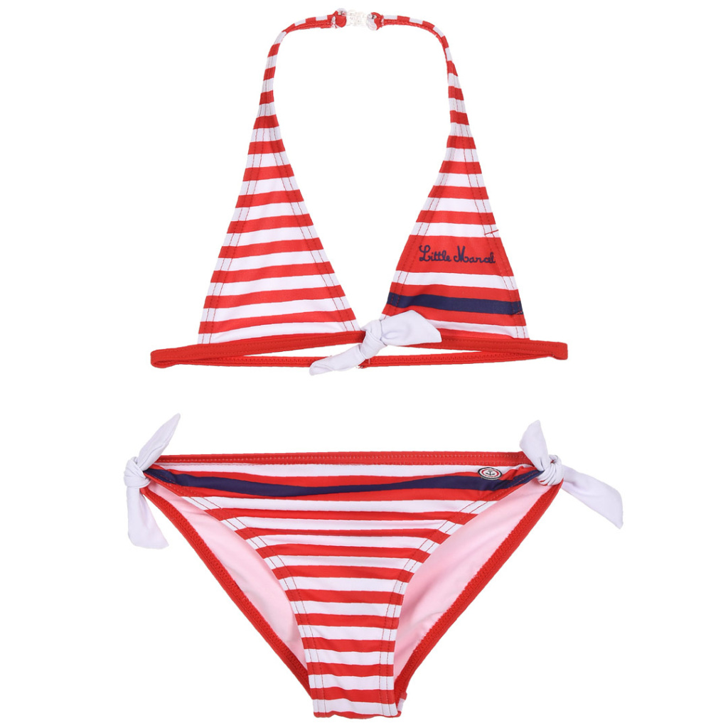 Dvoudílné dívčí plavky v námořnickém stylu. Podprsenka má zapínání na krkem a na zádech. Francouzská značka Little Marcel.