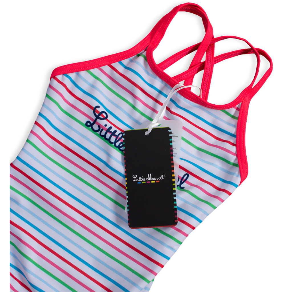 Dívčí plavky vcelku LITTLE MARCEL barevné PROUŽKY bílé