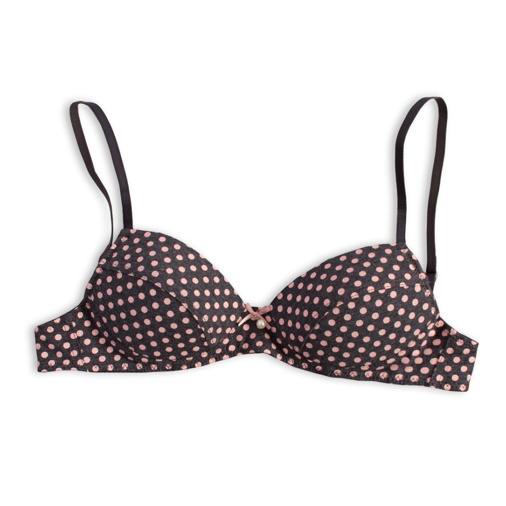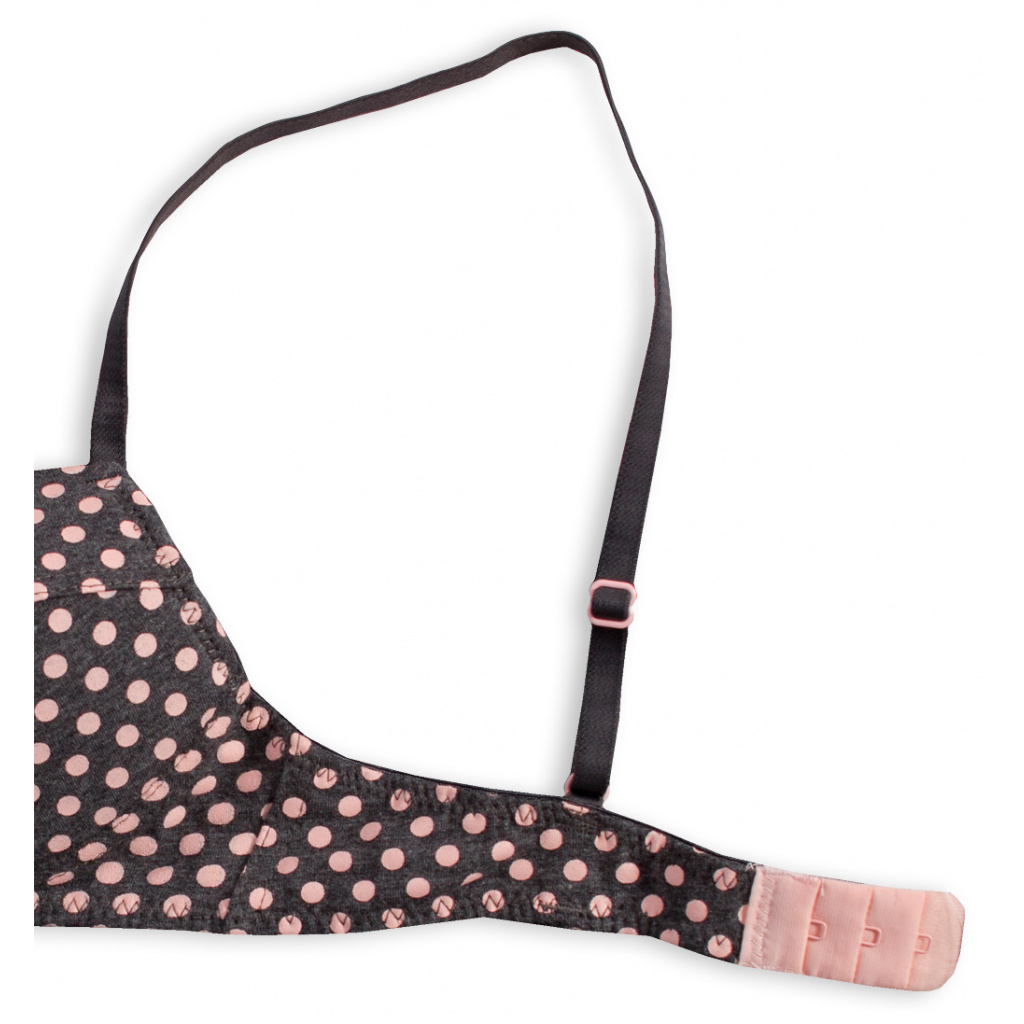 Dívčí podprsenka bez kostic. Mírně vyztužené košíčky s potiskem puntíků. Ramínka mají nastavitelnou délku. Zapínání vzadu na háček.Doplňkové parametry
