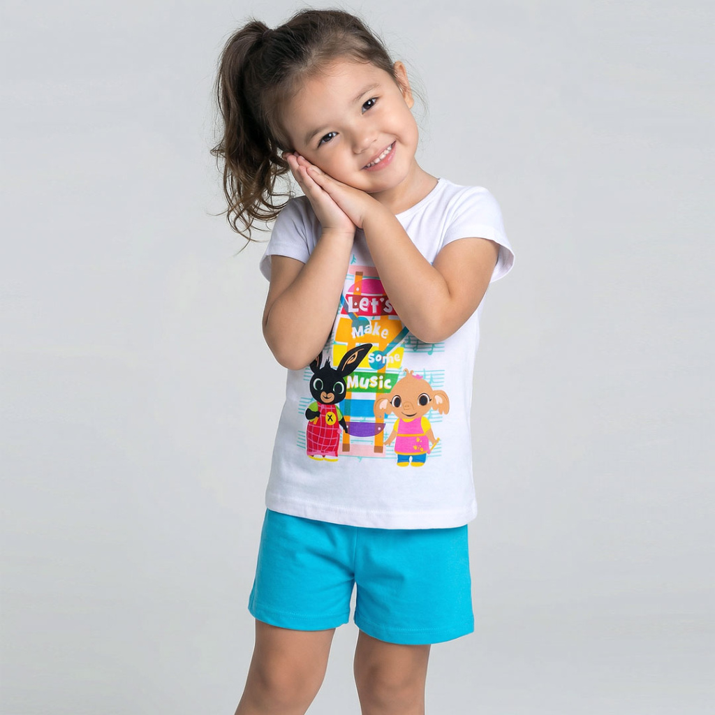 Dívčí pyžamo s králíčkem Bingem. Tričko s krátkým rukávem, s barevným obrázkem. Pohodlné, jednobarevné šortky.