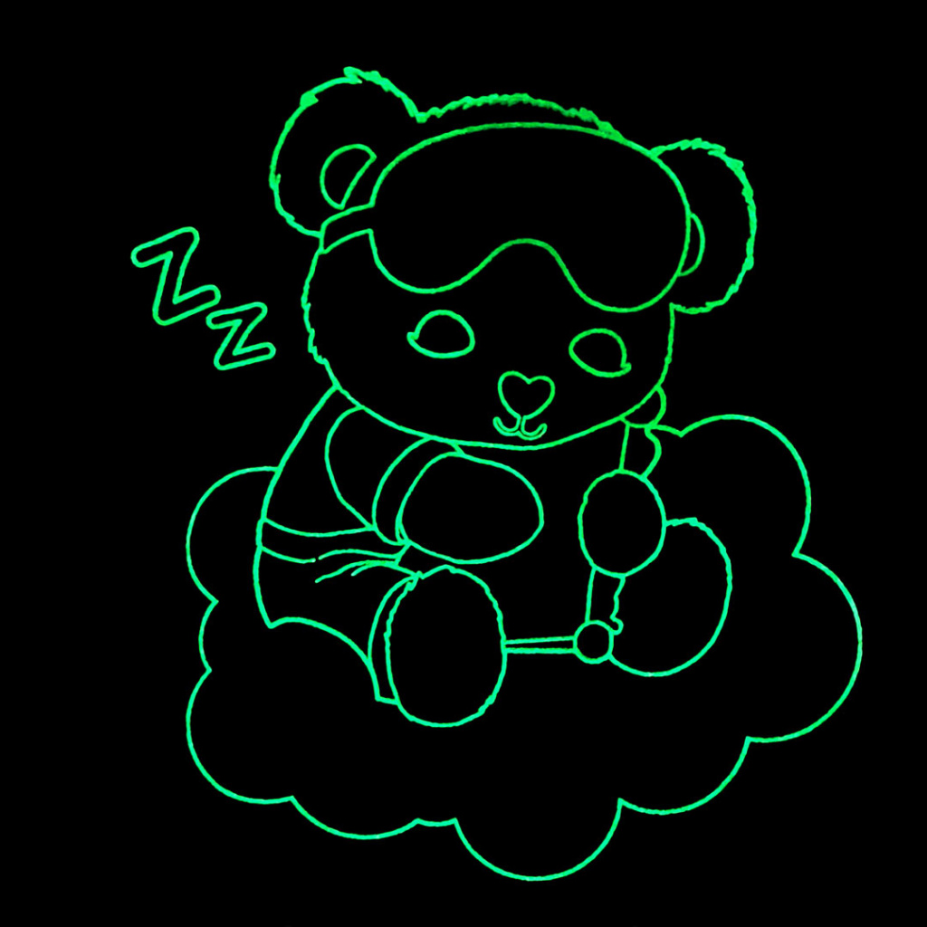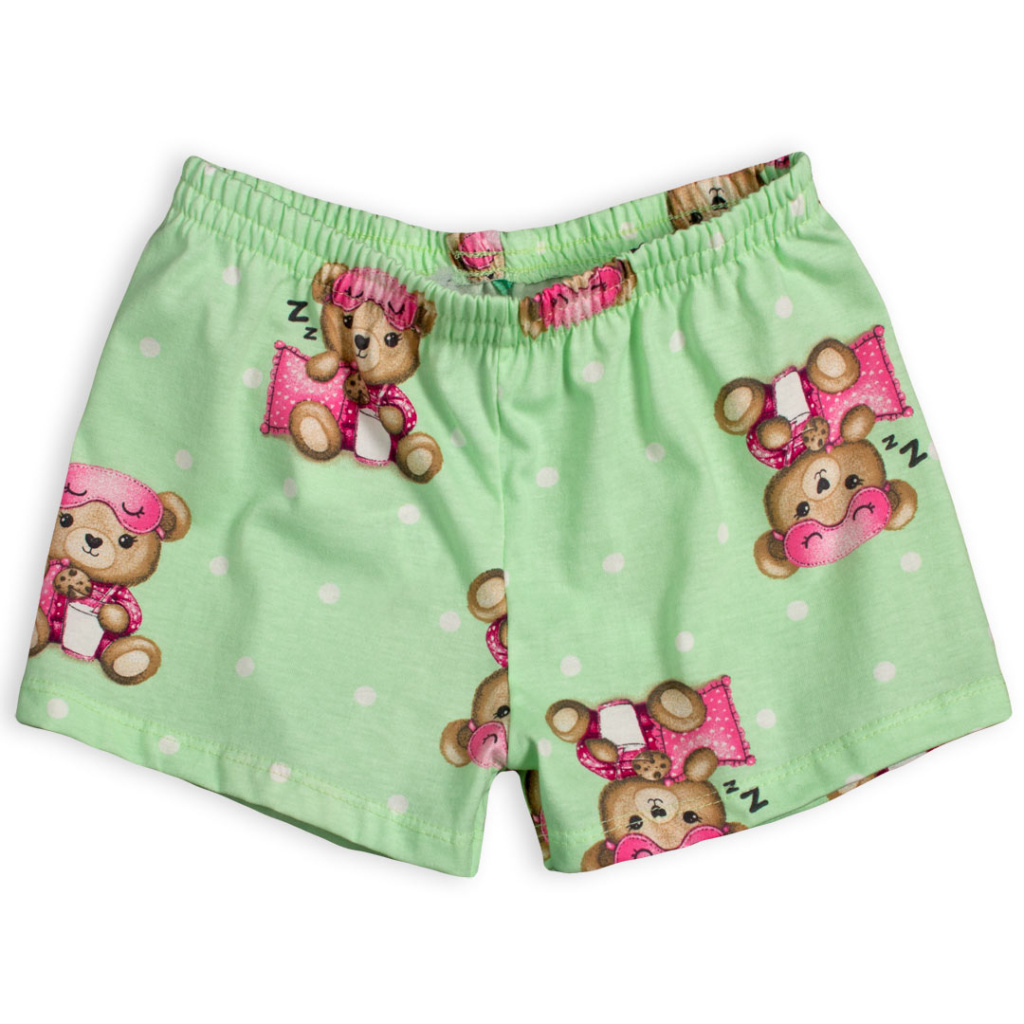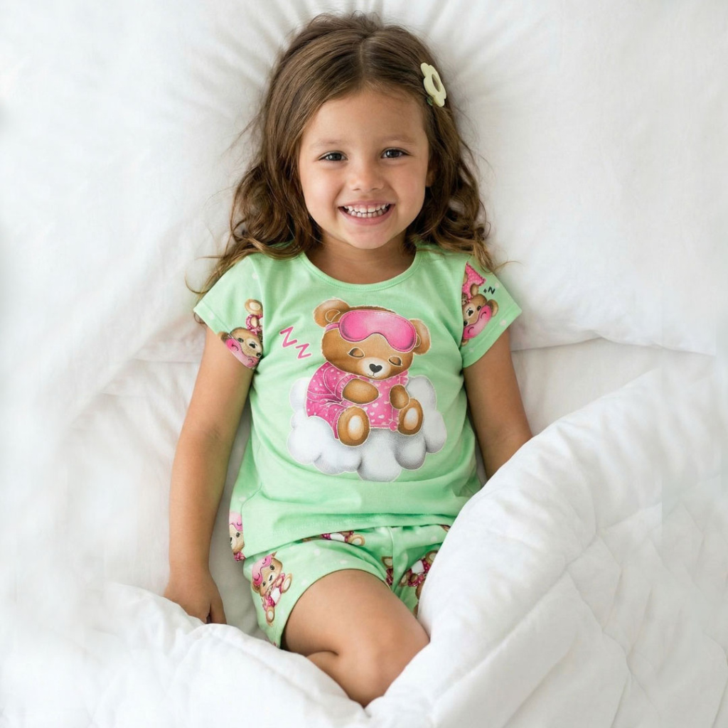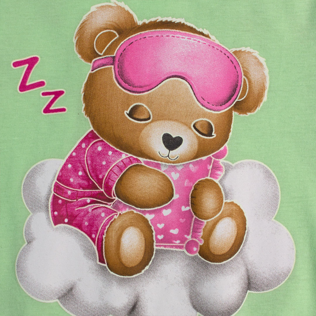 Dívčí pyžamo s medvídkem. Obrysy obrázku na tričku ve tmě svítí. Pohodlný střih, tričko mírně rozšířené. Bavlněný úplet. Vyrobeno v Brazílii.