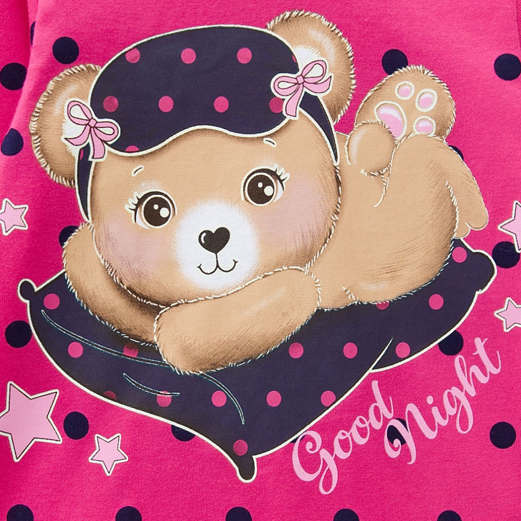 Krásné dívčí pyžamo s puntíky. Tričko s dlouhým rukávem, s roztomilým obrázkem se světélkujícími detaily. Pohodlné kalhoty s dlouhými nohavicemi. Vyrobeno v Brazílii.