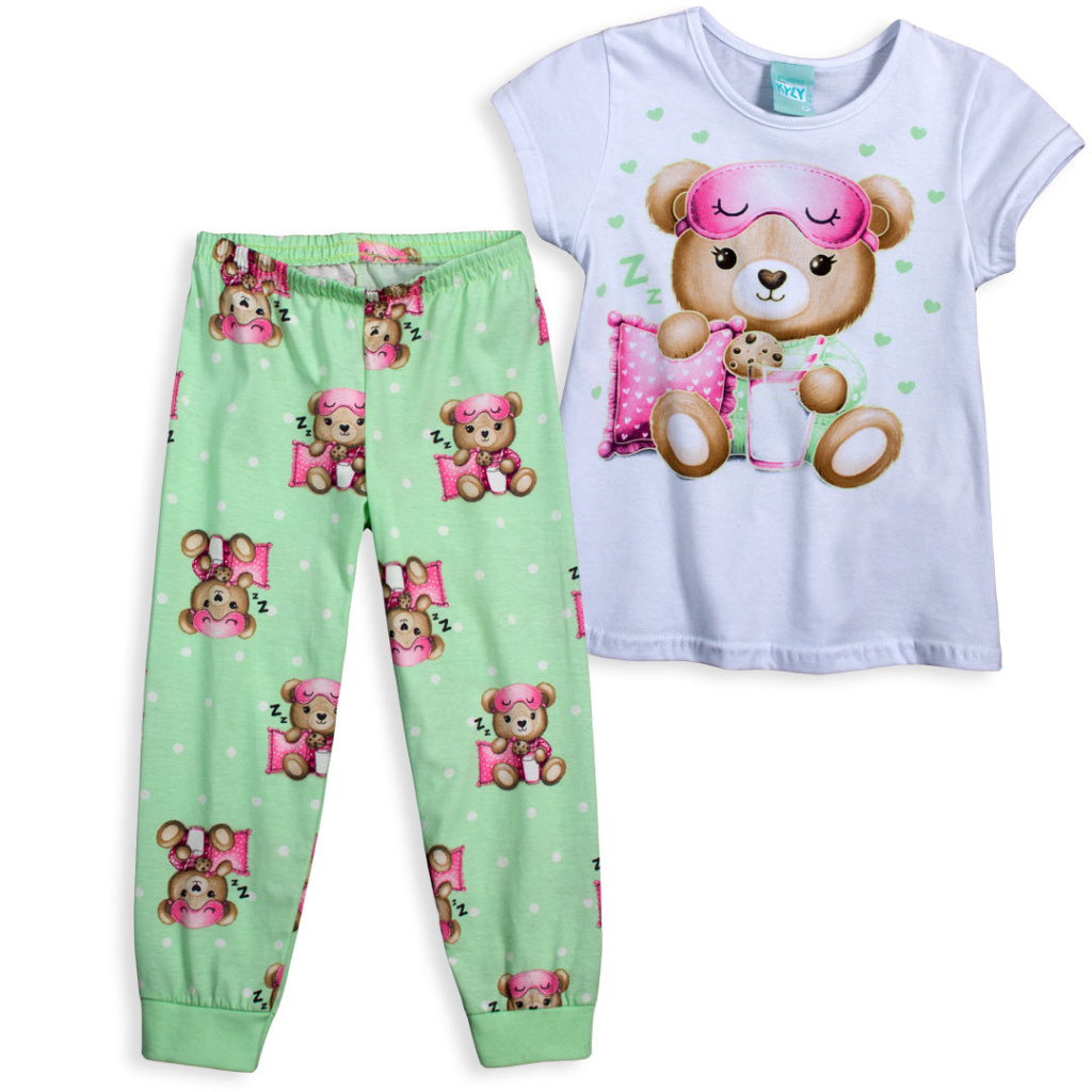 Krásné dívčí pyžamko. Tričko s krátkým rukávem, obrysy obrázku ve tmě svítí. Kalhoty s dlouhými nohavicemi, s pružnými náplety. Příjemný bavlněný úplet.
