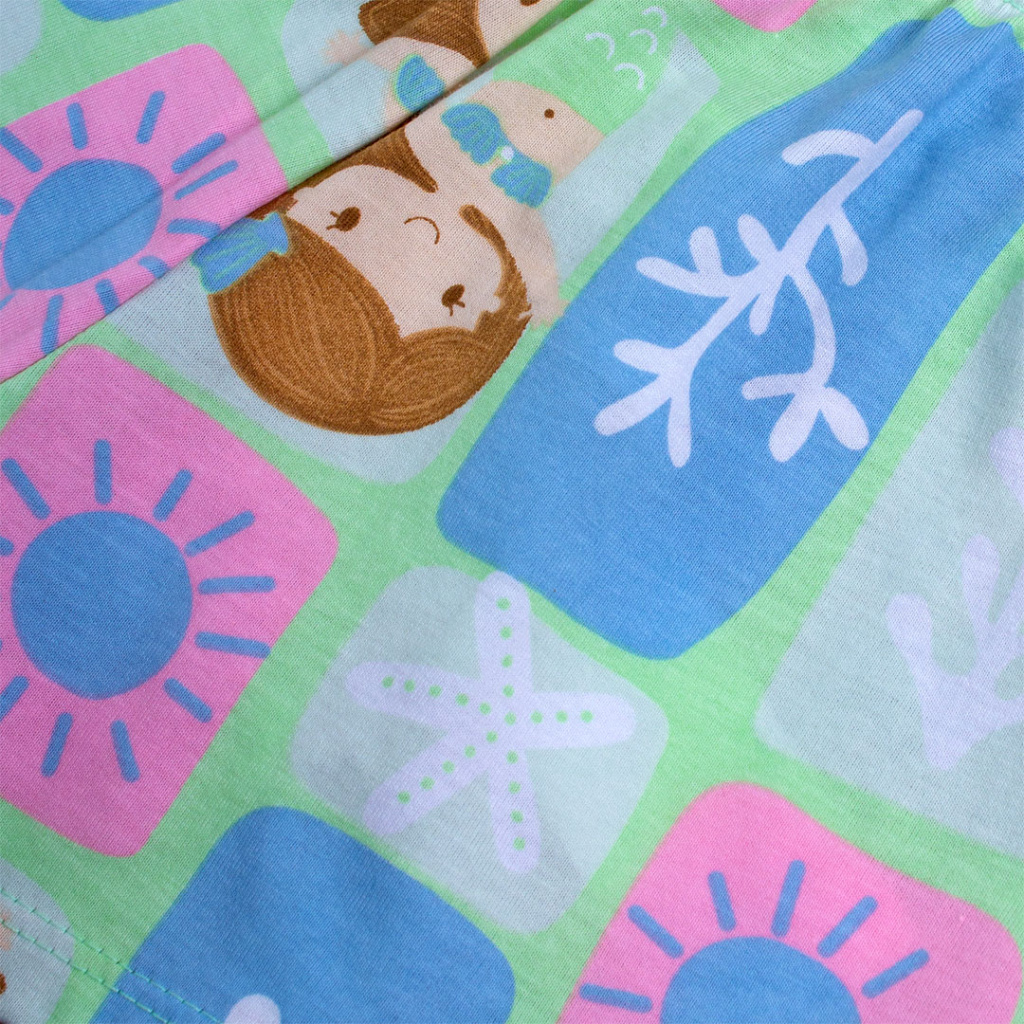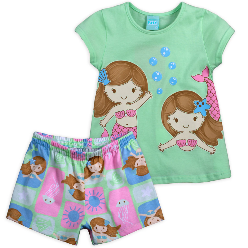 Dívčí pyžamko s mořskými pannami. Obrysy obrázku na tričku ve tmě svítí. Měkký bavlněný úplet. Vyrobeno v Brazílii.
