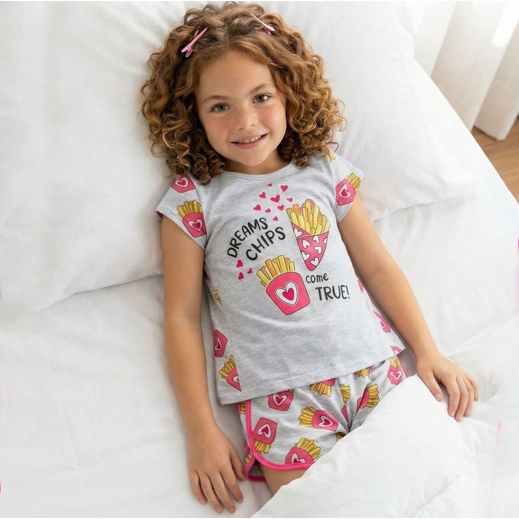 Dívčí pyžamo s potiskem. Obrysy velkého obrázku na tričku ve tmě svítí. Pohodlný bavlněný úplet. Vyrobeno v Brazílii.