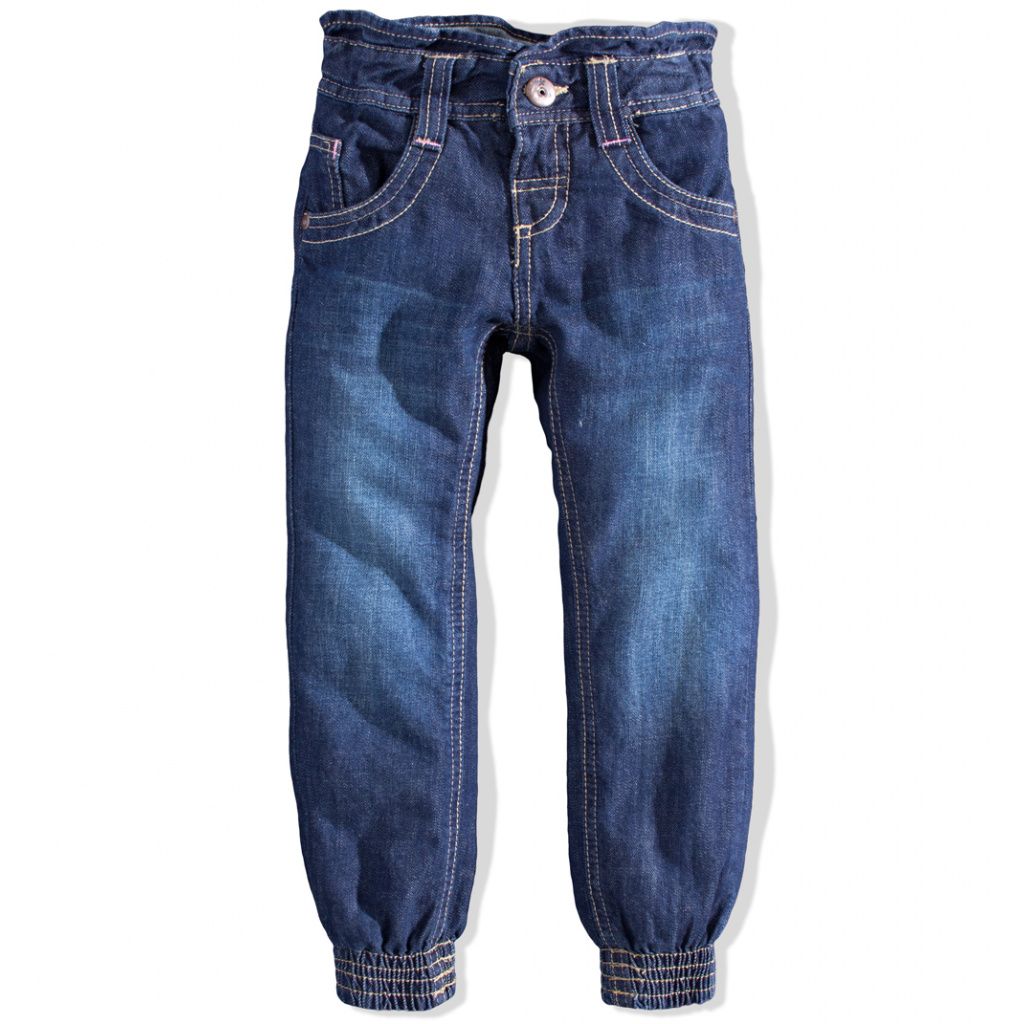 Dívčí rifle. Nabírané nohavice do gumy, v pase ozdobný volánek.Doplňkové parametry