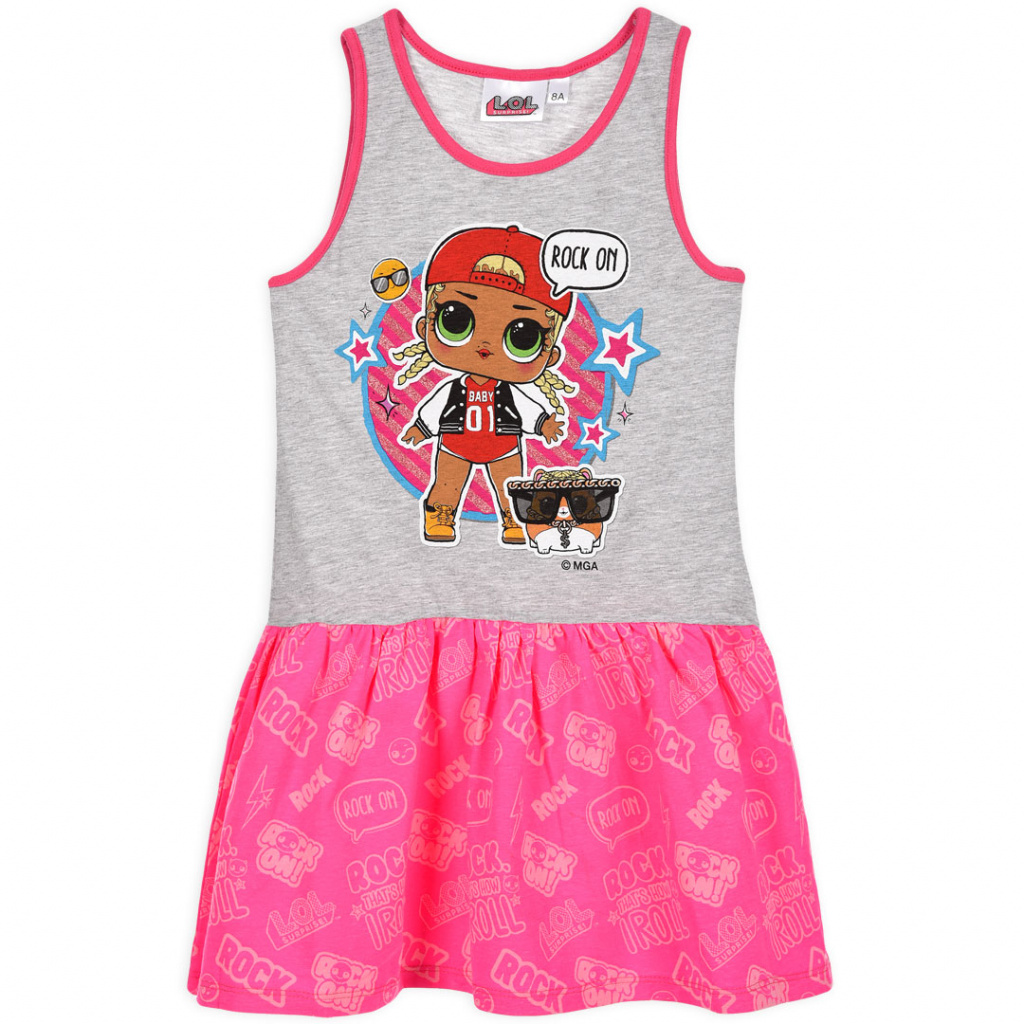 Dívčí letní šaty bez rukávů. Potisk panenek L.O.L.SURPRISE.