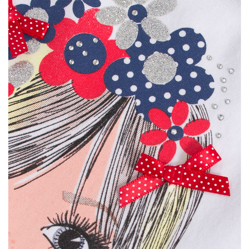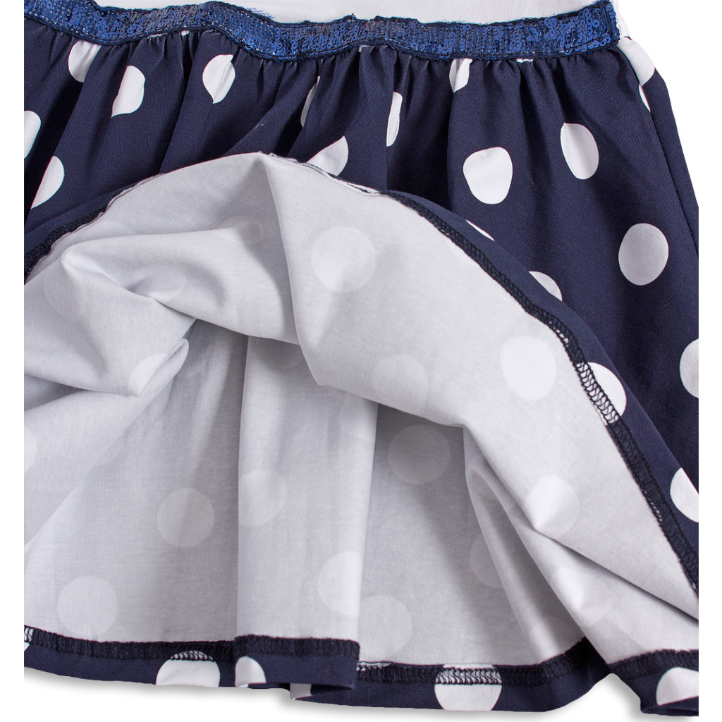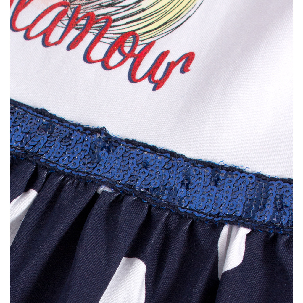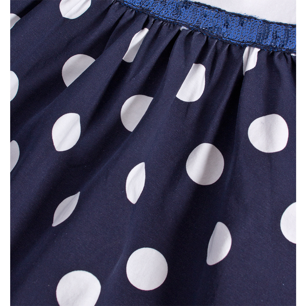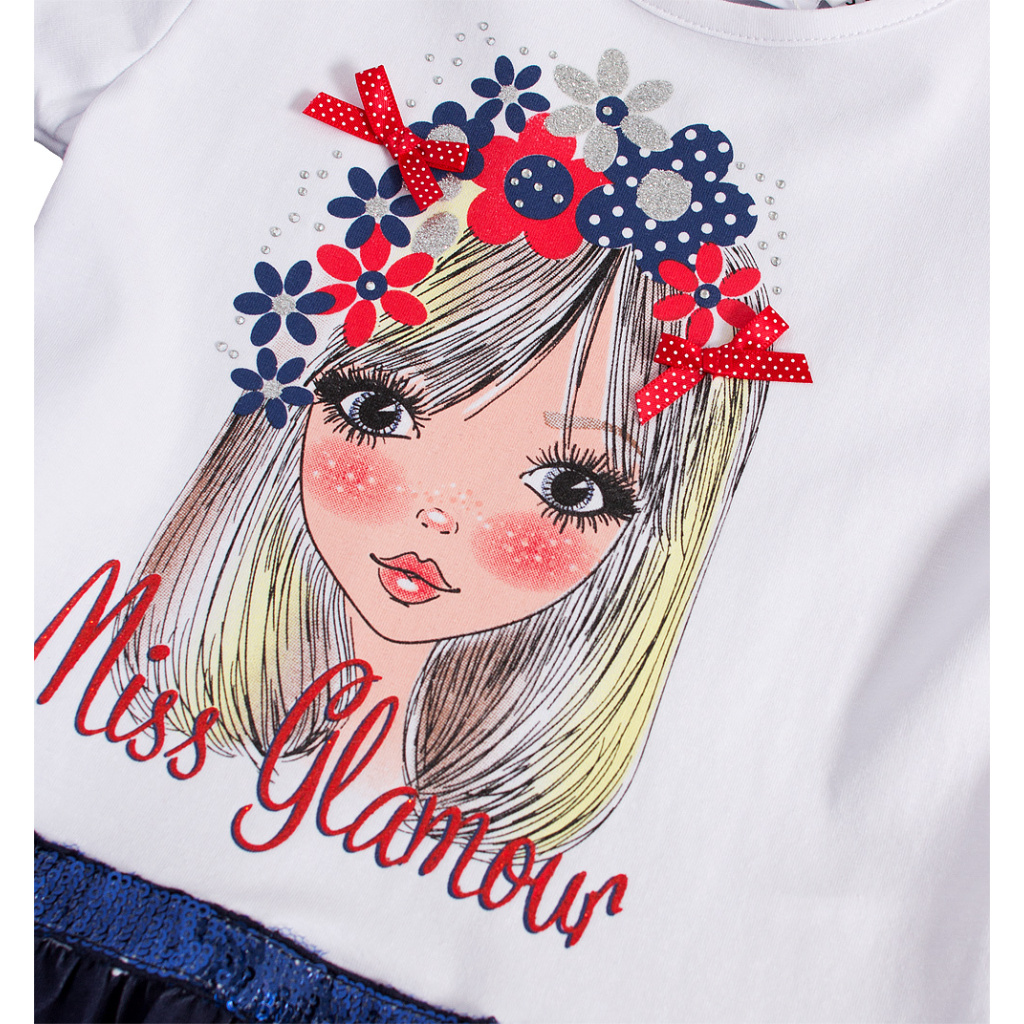 Dívčí šaty s krátkým rukávem. Velmi příjemný, hodně pružný úplet s potiskem. V pase na přední straně pás z drobných flitrů.Doplňkové parametry
