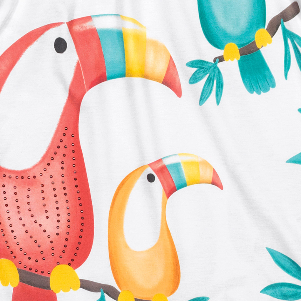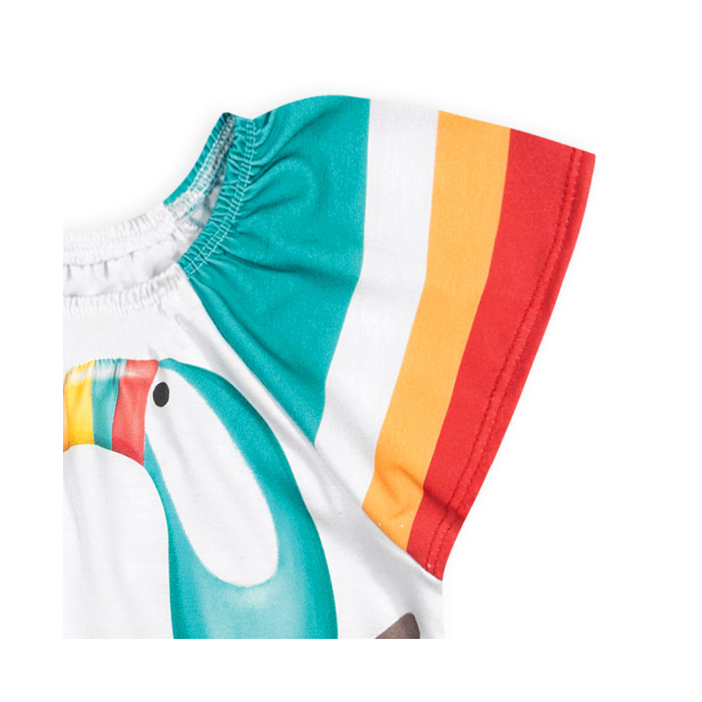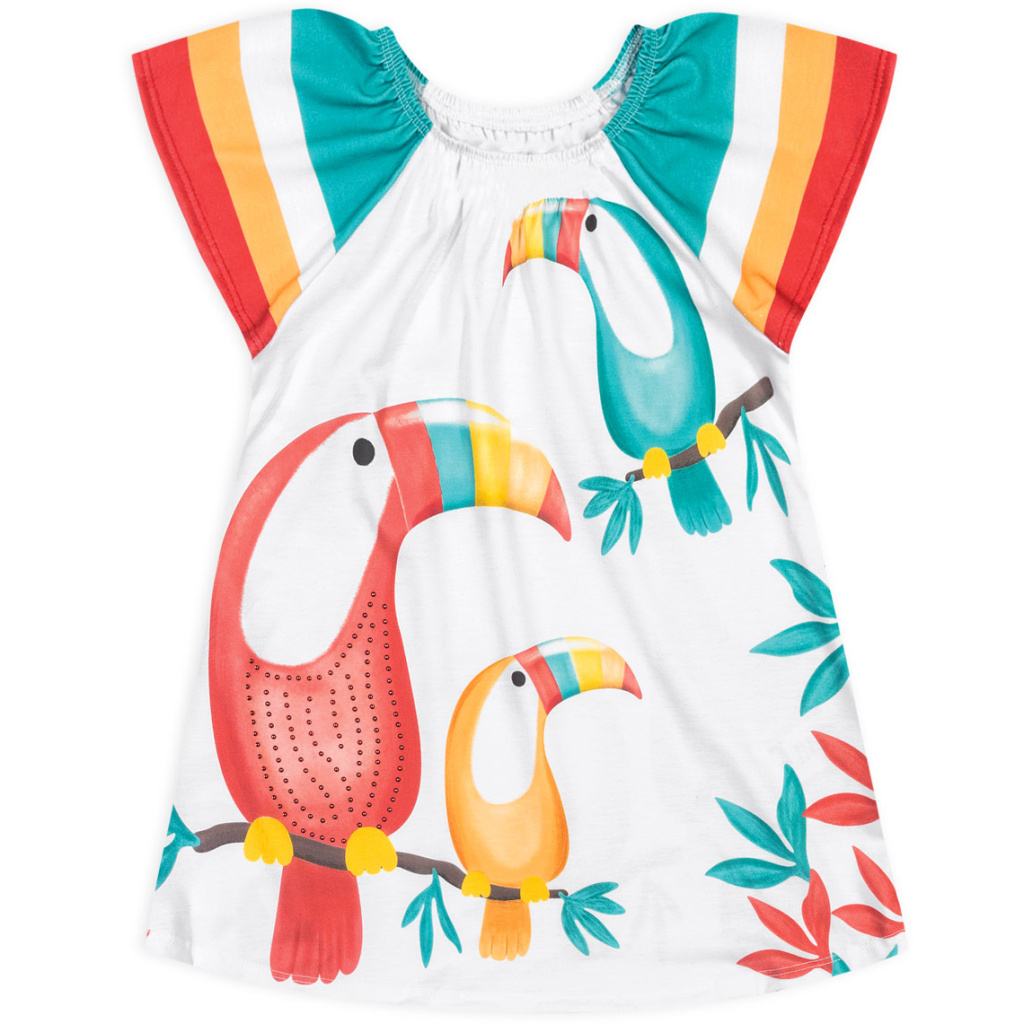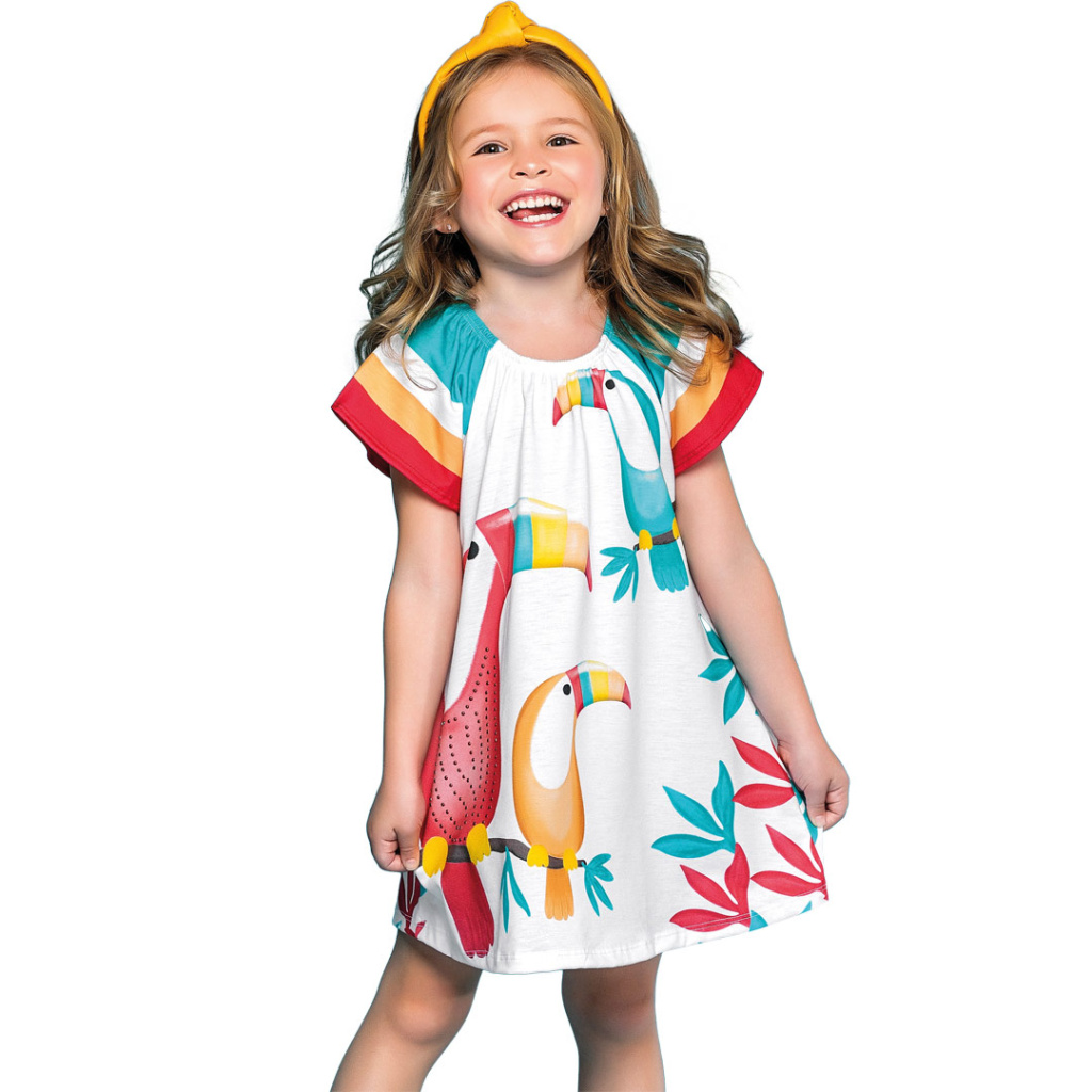 Krásné letní šaty. Krátký rukávek, kolem výstřihu gumička. Barevný potisk. Příjemný, lehký a hodně pružný materiál. Vyrobeno v Brazílii.