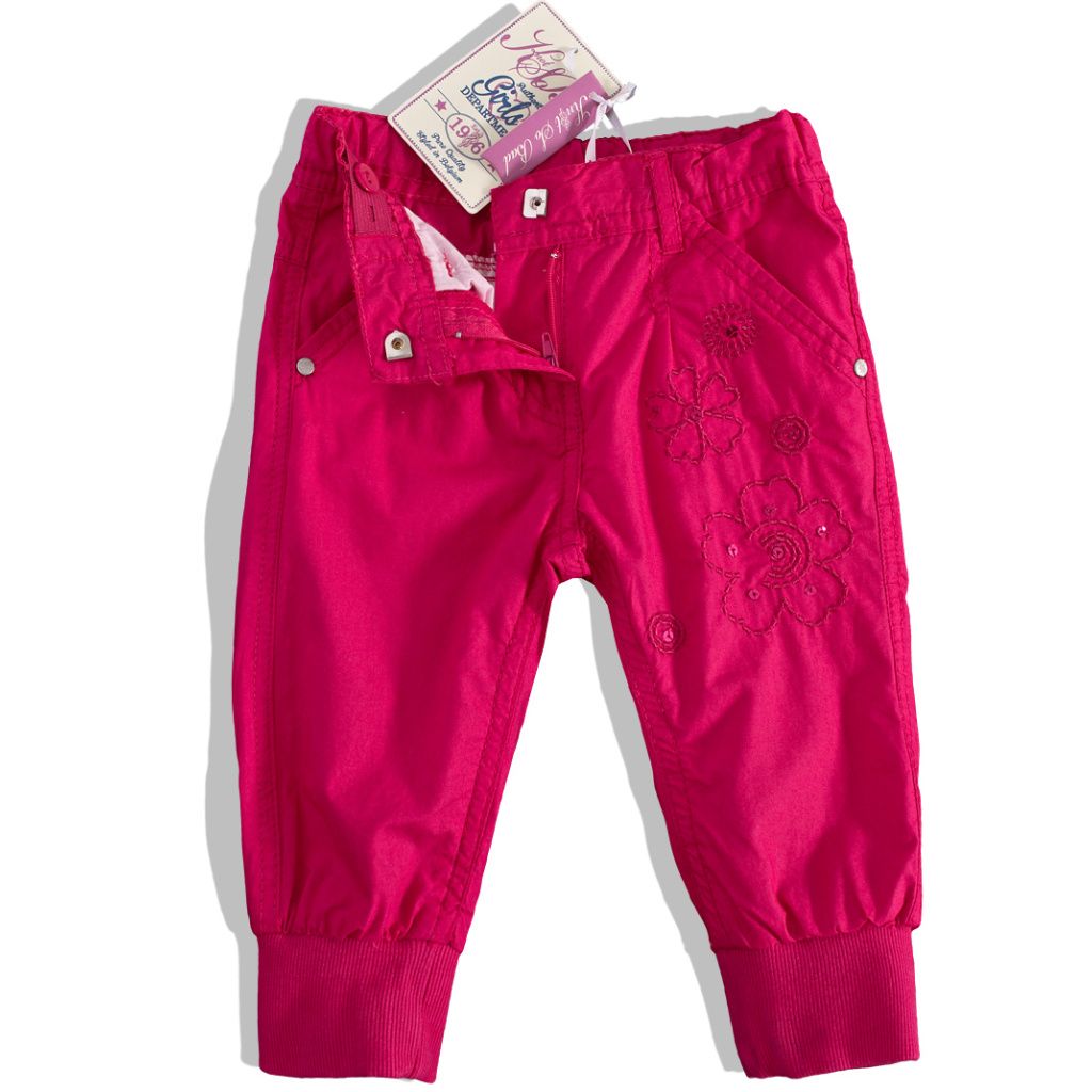Dívčí tříčtvrteční šortky. V pase nastavitelná guma, zapínání na zip a háček. Vpředu i vzadu kapsy, nohavice ukončené nápletem. Výšivka na nohavici.