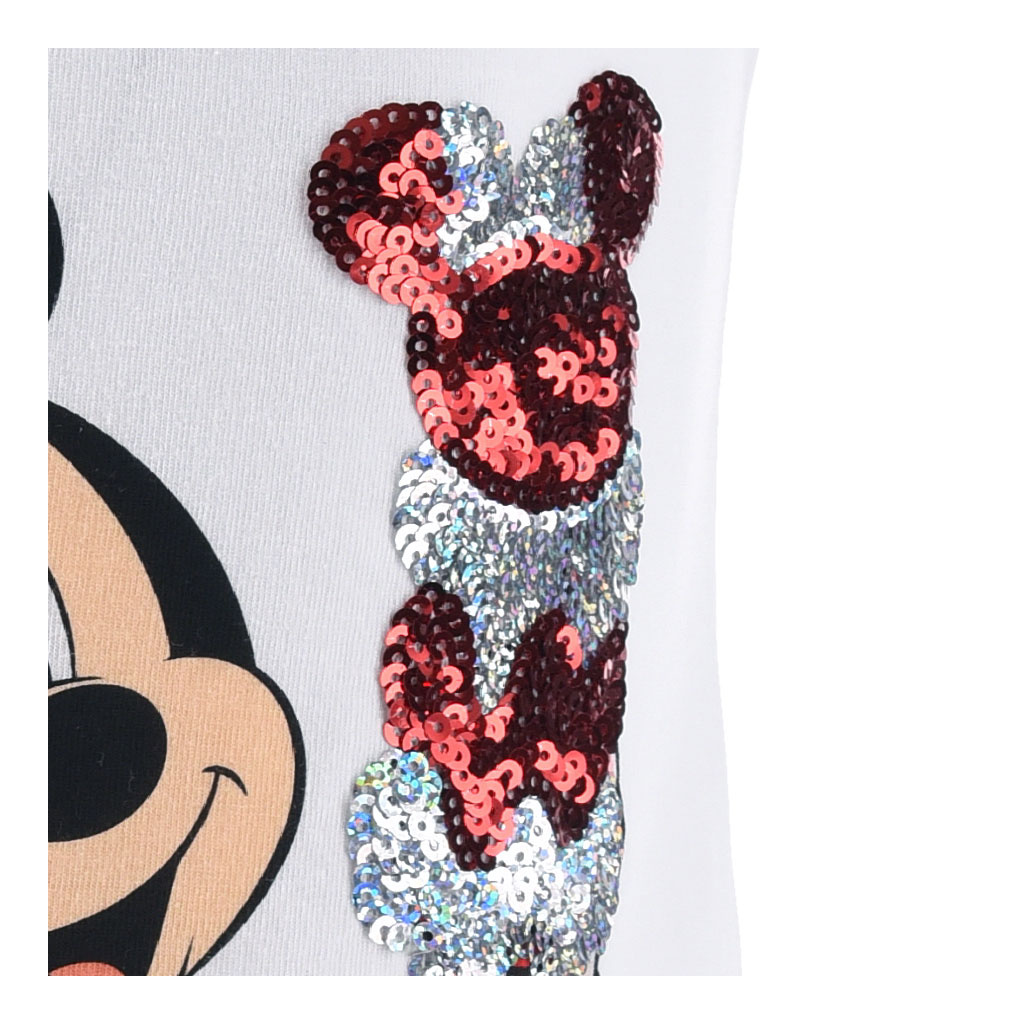 Dívčí letní souprava s myškou Minnie. Tričko s krátkým rukávem, s potiskem a flitry. Pohodlné šortky v pase na gumu. Na bocích kapsy zdobené knoflíky. Příjemný bavlněný úplet.