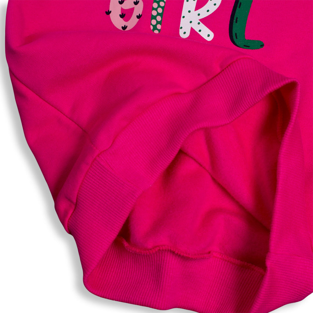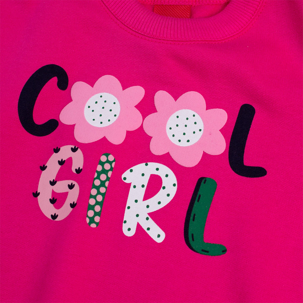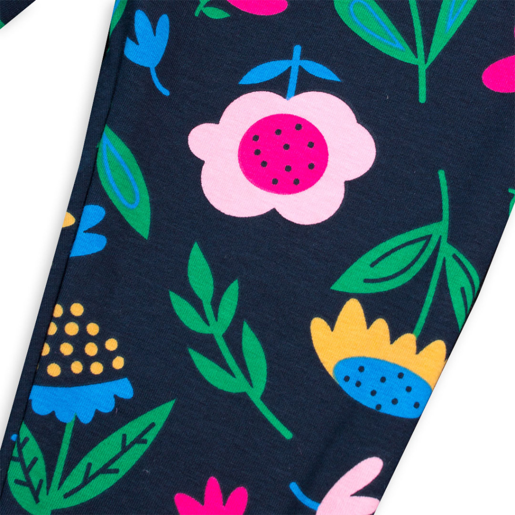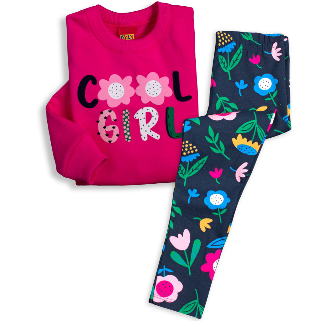 Krásná souprava pro holčičky. Mikina s nápisem, na rubové straně jemný chloupek. Dlouhé leginy s barevnými kytičkami. Příjemný materiál, výrazné barvy. Vyrobeno v Brazílii.